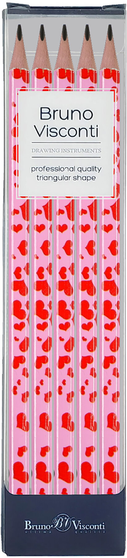 Набор карандашей чернографитовых HappyGraphix. Розовые сердца НВ 5 штук Bruno Visconti
