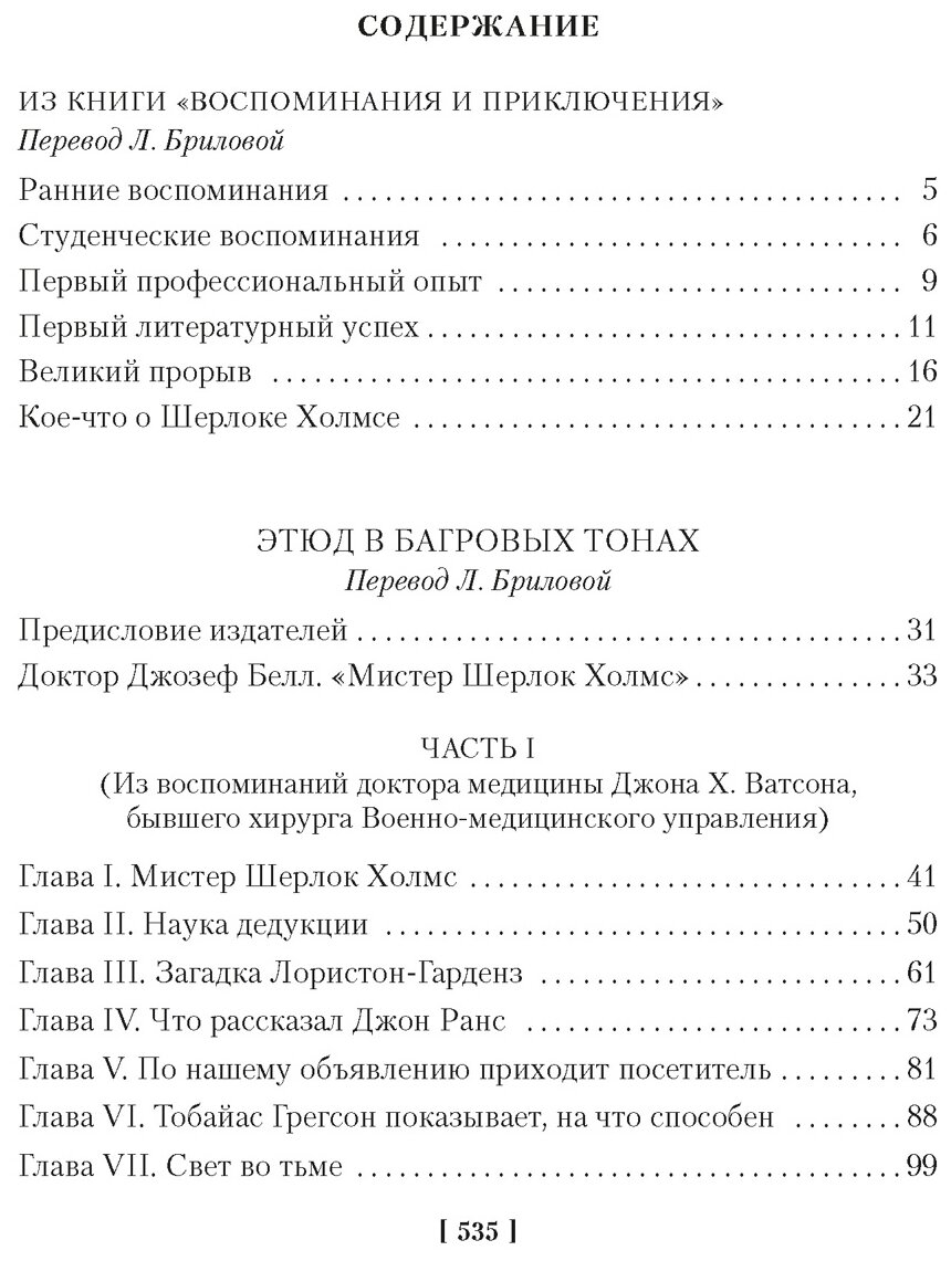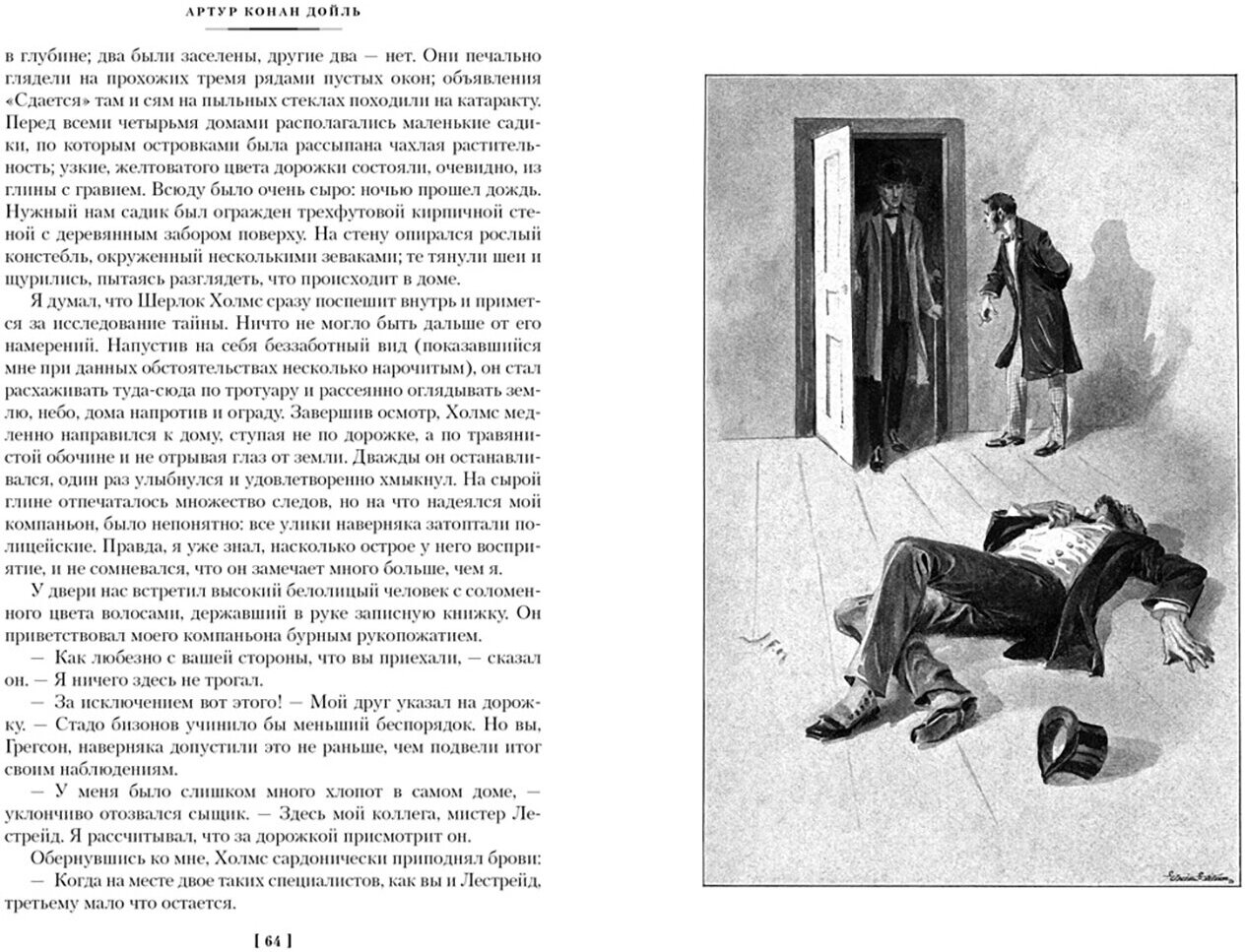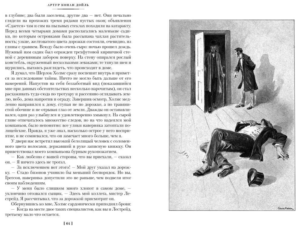 Первая повесть о Шерлоке Холмсе (хронологически начало цикла) и первый же сборник рассказов (хронологически после второй повести), дополнен оригинальными иллюстрациями времён Артура Конана Дойля и приложениями. На форзацах карта дома Шерлока и Лондона в районе Бейкер стрит. Весь текст в серии приведён к единому переводу.