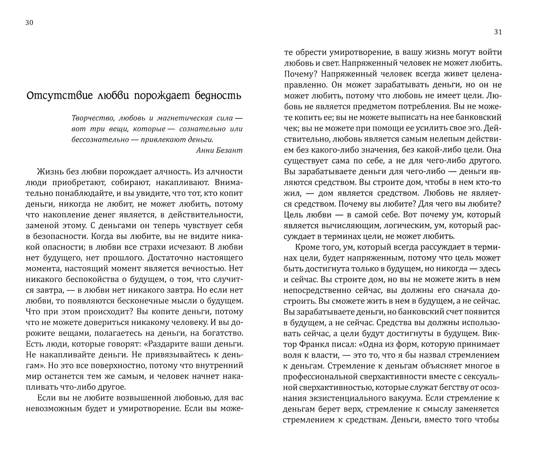 Жизнь - единственное реально существующее богатство. Богатство - это следствие состояния ума, качества вашей жизни. Учитесь находить богатства Вселенной повсюду. Удивительно, как люди научились себя ограничивать и такими изощренными способами! Богатство - способность любить себя полностью, без остатка. Поиск богатства - благое занятие, но только при условии, что вы ищите его там, где оно является светозарной энергией. Богатство - это не то, что вы имеете, а то, без чего вы можете обойтись. Богатые люди носят свои сокровища внутри себя. Деньги могут обеспечить любой комфорт и удобства, но только духовность может даровать покой ума.