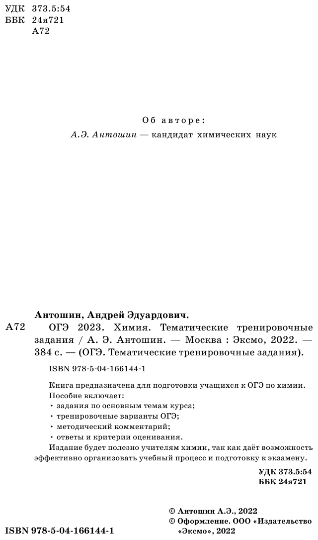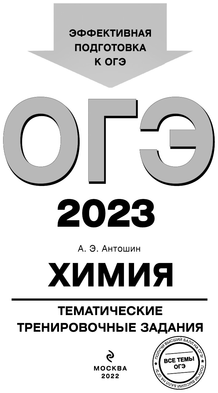 ОГЭ-2023. Химия. Тематические тренировочные задания (Антошин Андрей Эдуардович); ООО "Издательство "Эксмо", 2022
