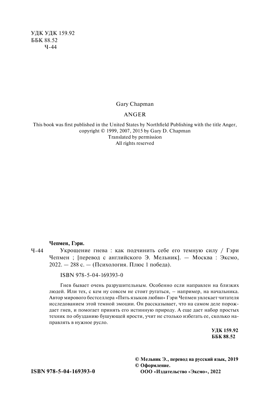 Укрощение гнева. Как подчинить себе его темную силу (Чепмен Гэри); ООО "Издательство "Эксмо", 2022