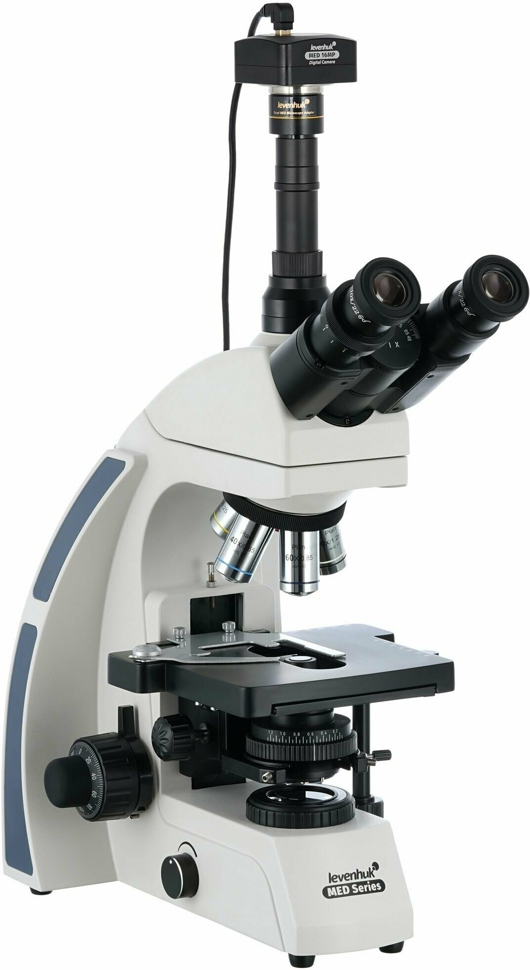 Levenhuk MED D40T LCD – микроскоп лабораторный (электронный) с камерой 5 МпиксПланахроматическая оптика, скорректированная на бесконечность