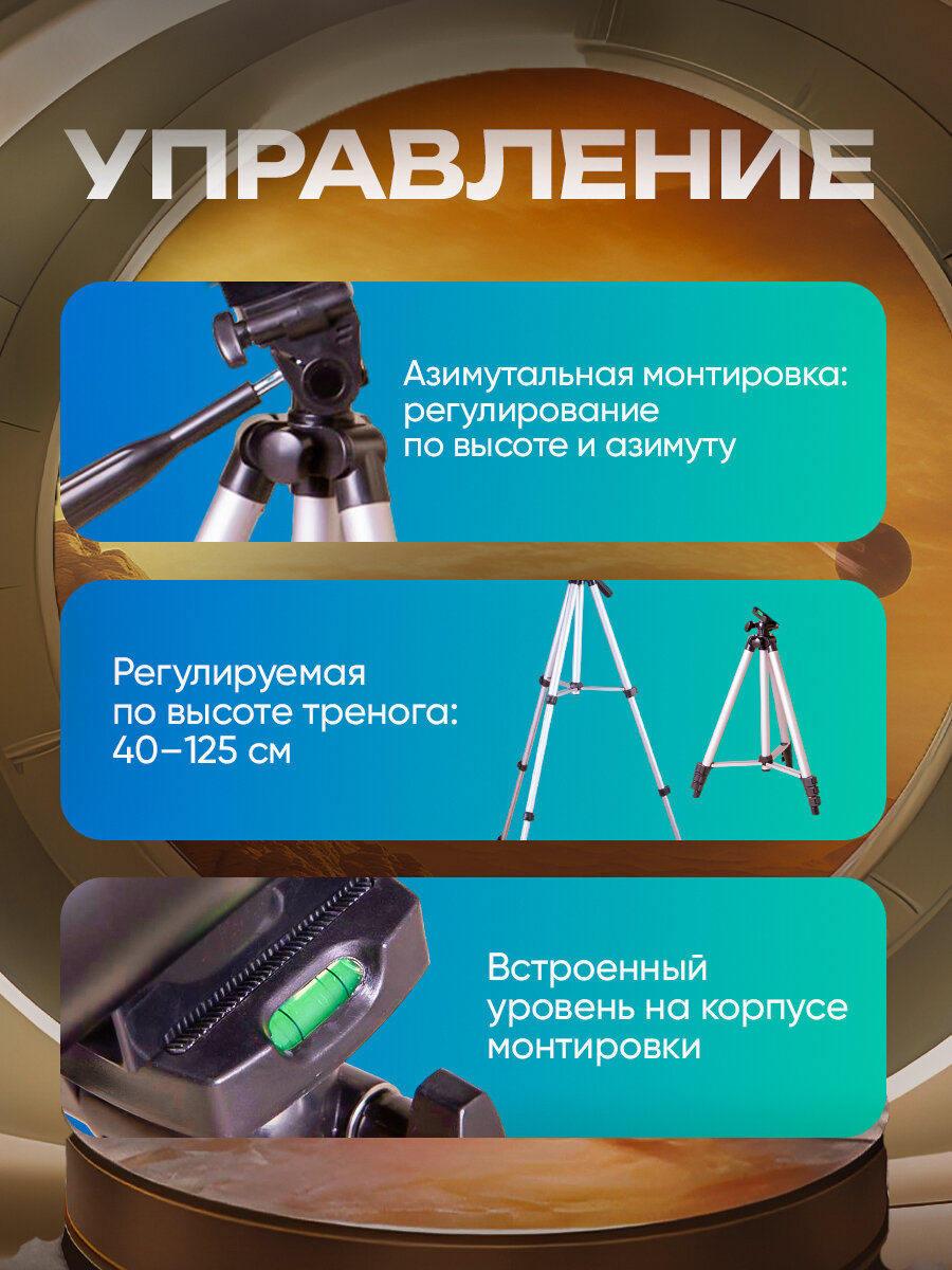 Телескоп Levenhuk Skyline Travel 50 – компактный и легкий рефрактор начального уровня, с которым справится даже ребенок. Этот телескоп отлично подойдет для изучения поверхности Луны, наблюдений за планетами Солнечной системы и рассматривания наземных объектов. Исследовать далекий космос получится только на уровне ярких звезд и галактик. В комплекте с телескопом идет множество аксессуаров – два окуляра, диагональная призма, линза Барлоу. Приобретать дополнительные не придется. Максимально увеличение "из коробки" составляет 135 крат. Труба устанавливается на простую азимутальную монтировку, которую можно перемещать по высоте и азимуту. Особых умений и знаний для управления телескопом не требуется. Радует и размер трубы – она почти в два раза короче, чем у большинства других рефракторов. Тренога телескопа сделана из алюминия и регулируется по высоте. Ее высоту легко подогнать под рост наблюдателя. Телескоп можно брать с собой на природу. Он компактный, его нетрудно собрать за несколько минут, а облегченная конструкция позволяет возить его с собой даже ребенку. А в комплект поставки включен специальный рюкзак для транспортировки оптического прибора и аксессуаров. Levenhuk Skyline Travel 50 – прекрасный наблюдательный инструмент для выездов за город, который понравится не только взрослым, но и детям. Особенности: Телескоп для планетарных и наземных наблюдений Компактная укороченная труба Облегченная конструкция Увеличение с комплектными аксессуарами – 135х Просветленная оптика Азимутальная монтировка Отличный выбор для детей и начинающих В комплекте удобный рюкзак для переноски Комплект поставки: Телескоп Монтировка Оптический искатель 2х Окуляр H8 мм, 1,25'' Окуляр H20 мм, 1,25'' Диагональная призма Линза Барлоу 3х Тренога Рюкзак для переноски Инструкция по эксплуатации Гарантийный талон