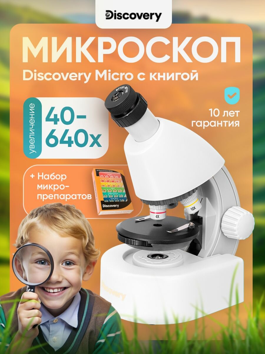 Купили на день рождения детский микроскоп Discovery Micro Solar с книгой для мальчика 8-ми лет. Очень яркий пестрый цвет, для ребятишек в самый раз. Сам микроскоп из пластика, но за такую сумму это нормально... Только пожалели, что сразу не взяли набор микропрепаратов. Заказали большой комплект, ждем пока придет.
