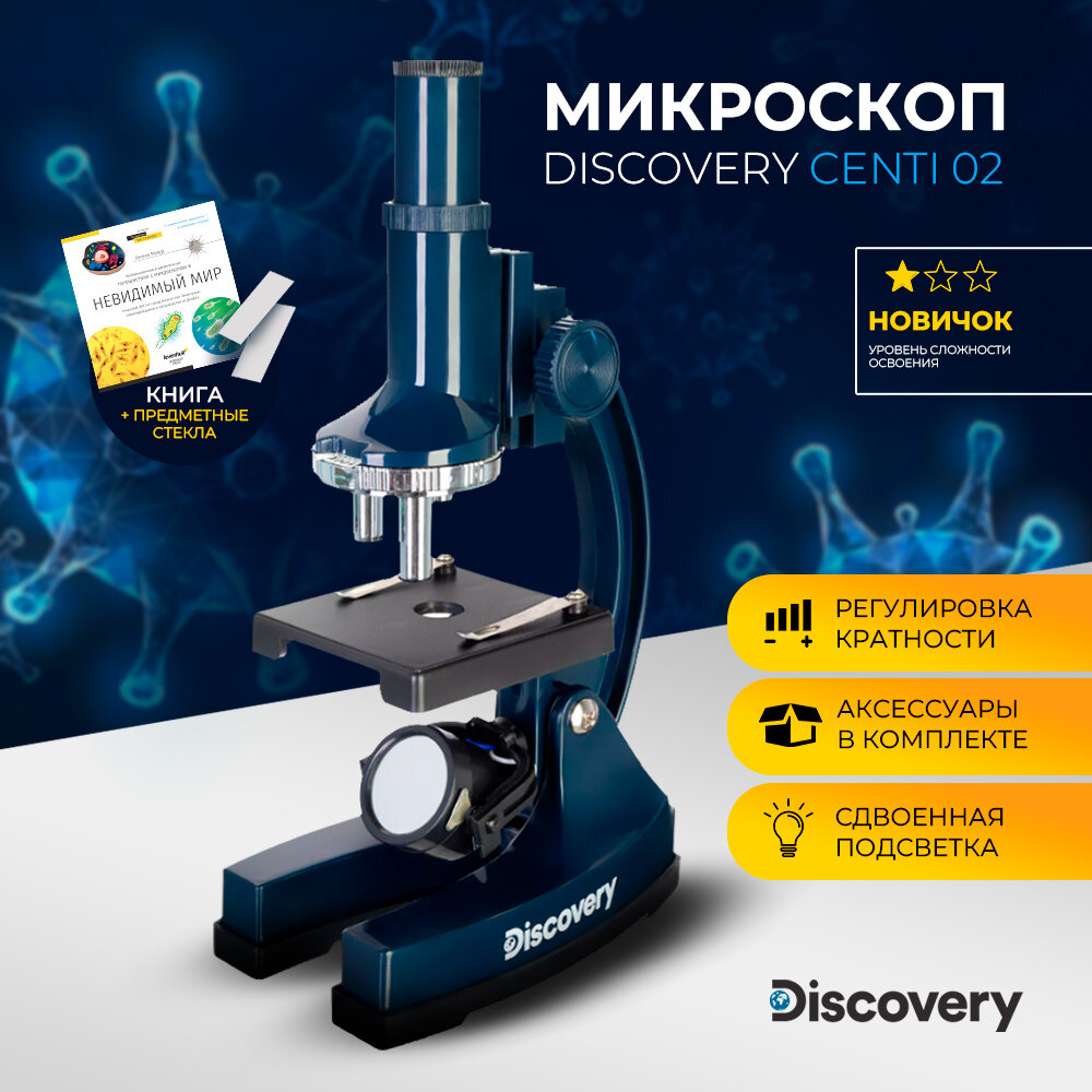 Микроскоп Discovery Centi 02 создан для пользователей, которые только начинают интересоваться основами биологии и хотят больше узнать о микромире. Эта модель проста в обращении, не требует никаких знаний и умений и комплектуется более чем 25 аксессуарами. Также с микроскопом идет книга знаний «Невидимый мир», которая станет отличным подспорьем на пути в большую науку.