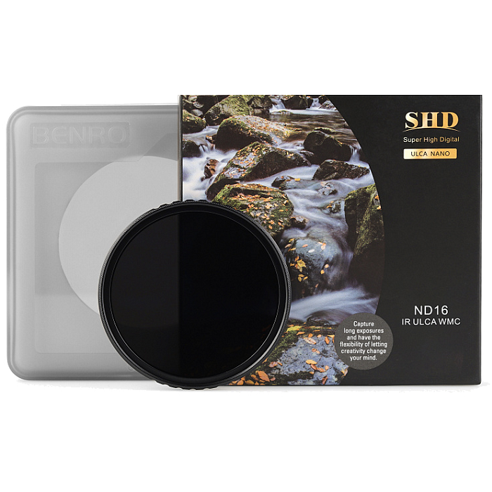 Benro SHD ND 16 IR ULCA WMC Ø67 мм светофильтр нейтрально-серыйФильтр нейтральной плотности, который обеспечивает уменьшение экспозиции на 4 ступени. Его плотность 1,2 создает затемнение всего изображения, что позволяет фотографировать с более открытой диафрагмой или с более длинной выдержкой, чем обычно требуется. Увеличивая диафрагму или уменьшая время экспозиции, вы можете контролировать глубину резкости и контролировать динамику движения. Фильтры нейтральной плотности не влияют на окраску изображения и идеально подходят для сочетания с другими типами фильтров.• Изготовлен из лучшего стекла серии B270 немецкого производителя оптического стекла Schott.• 15-слойное мульти просветление ULCA (Ultra Low Chromatic Aberration) - уменьшает блики и значительно снижает хроматическую аберрацию.• Технология IRND - подавляет инфракрасный спектр света сохраняя правильную цветопередачу.• Многослойное покрытие NANO WMC – устойчиво к механическому воздействию, отталкивает воду и жир, облегчает очистку фильтра.• Оптическая технология полировки HD - обеспечивает чрезвычайно плоскую оптическую поверхность для получения исключительно четких изображений без ореолов.• Матово-чёрное покрытие Black Edge внутренней поверхности оправы фильтра - предотвращает переотражение и засветку. • Латунная оправа (Brass Ring) - изготовлена на высокоточных станках, более устойчива к боковым ударам и сводит к минимуму риск «закусывание» фильтра при установке на объектив, в отличии от других материалов.• Одна из самых тонких (Slim) оправ фильтра на рынке - исключает виньетирование на широкоугольных объективах, сохраняет профиль фильтра более компактным.