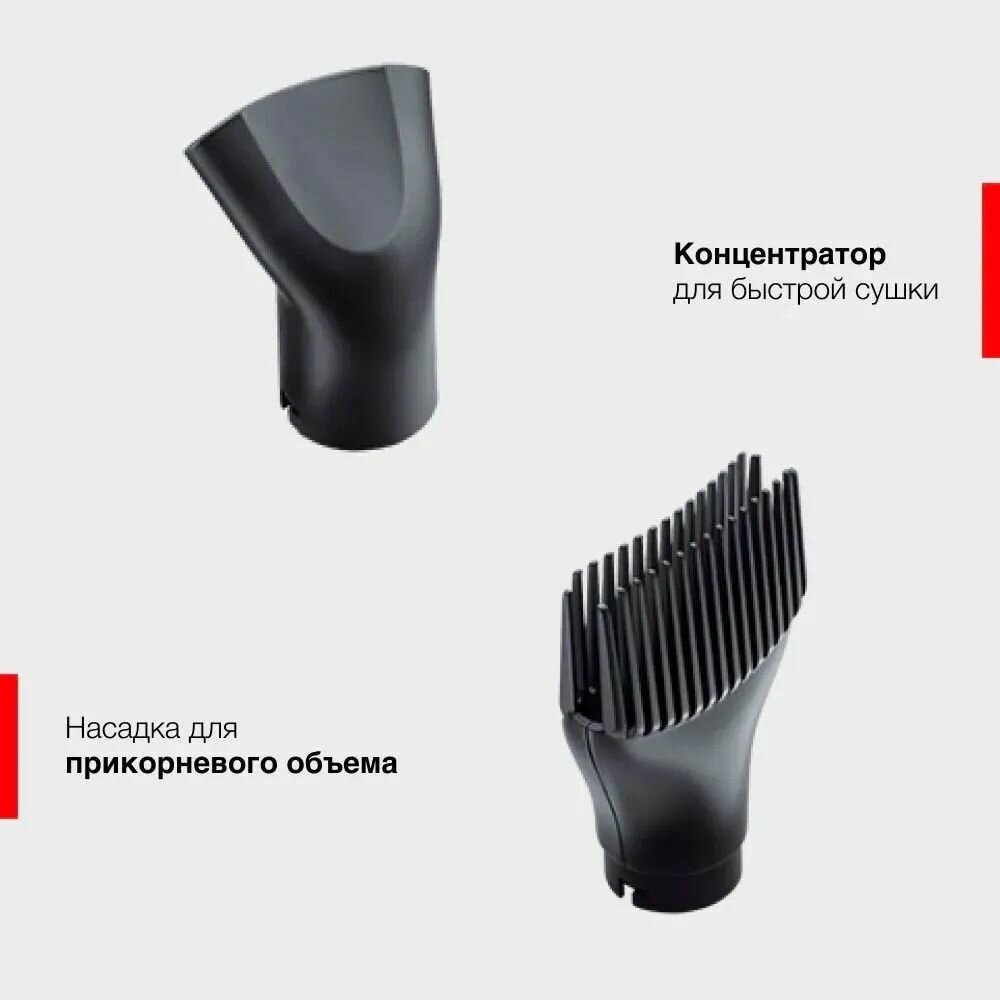 | Прочие особенности и свойства | Ионное кондиционирование для предотвращения спутывания волос Решетка из керамики для равномерного распределения тепла 3 температурных/скоростных режима, в том числе обдув холодным воздухом Концентратор для быстрой сушки Плоская щетка для выпрямления волос Насадка для прикорневого объема Термощетка 21 мм Термощетка 30 мм с выдвижными щетинками Профессиональная сумочка для хранения Вращающийся шнур длиной 3м |