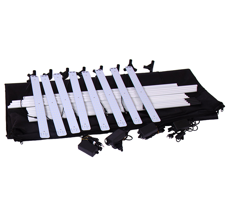 Портативная студия FST LT-200 позволяет фотографировать детей и взрослых в полный рост (съемка на документы, съемка для каталогов одежды), ее также можно положить на бок для съемки длинных предметов (музыкальные инструменты, большие игрушки и т.д.). Для равномерного освещения в комплекте идут 8 светодиодных панелей мощностью 50 Вт каждая, которые крепятся на каркасе с помощью неодимовых магнитов и поворачиваются в креплениях. Вы можете располагать панели любым удобным способом: спереди, сзади, выше или ниже, для создания необходимого светового рисунка.