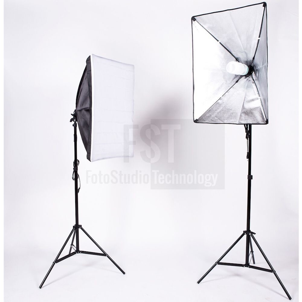 Комплект из 2 люминесцентных источников освещения мощностью 105 Вт каждый с 2 софтбоксами 40х60 см, 2 студийными стойками 2.05 м, а также сумкой для хранения и транспортировки. Хорошо подходит для съемки видео в домашних условиях. Яркость осветителей не регулируется, однако освещенность можно эффективно изменять, перемещая приборы ближе или дальше от объекта съемки. Софтбоксы дают мягкий равномерно рассеянный свет, но при желании рассеиватель можно снять: в этом случае свет получится более жестким, как у световых панелей.Цветовая температура ламп составляет 5500 К. Благодаря распространенному цоколю Е27 они легко заменяются на новые в случае повреждения или исчерпания своего ресурса. Приборы работают напрямую от сети 220 В.