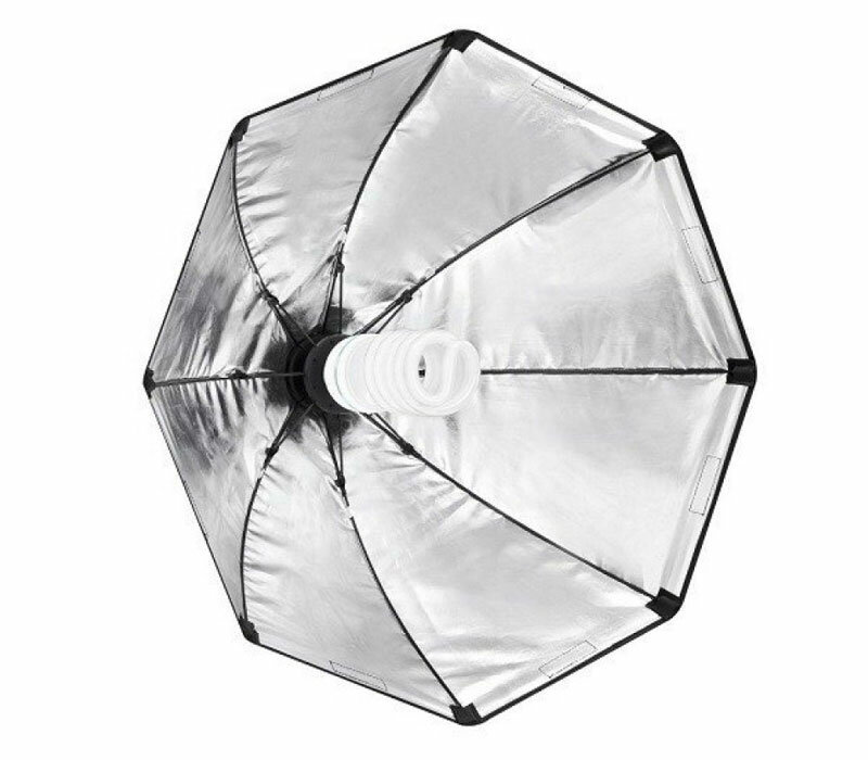 Комплект FST FK-60 состоит из простого осветителя с люминесцентной лампой мощностью 125 Вт, восьмиугольного софтбокса (октабоксом) диаметром 60 см и студийной стойки высотой до 200 см. Октабоксы пользуются популярностью в качестве фронтального света: они оставляют приятные округлые блики в глазах фотомодели или на отражающих поверхностях предметов. Тканевый рассеиватель октабокса создает мягкий свет без глубоких теней и бликов.Прибор очень прост в обращении: из всех органов управления имеется только выключатель. Высокая мощность люминесцентной лампы обеспечивает яркость, сравнимую со светом лампы накаливания на 750 Вт.