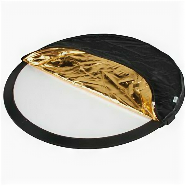 Комплект круглых отражателей с ручкой и с пятью поверхностями (белая, черная, серебристая, золотая и на просвет). Незаменим при съемке с естественным освещением на природе, а также при съемке в студии. В сложенном виде компактен и удобен для транспортировки. Диаметр - 60см.Принцип устройства и использования: отражатель состоит из просветного отражателя на пружине и чехла с молнией по периметру; внутренние стороны чехла чёрная и золотая, а внешние – белая и серебряная; в зависимости от поставленных задач используется одна из четырёх сторон чехла (так как чехол можно вывернуть); нужной стороной чехол одевается на просветный отражатель с пружиной, молния застёгивается. После использования отражателя, его надо свернуть и уложить в специальный защитный чехол.