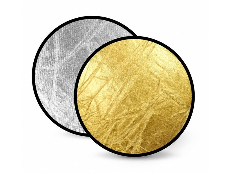Овальный складной отражатель 2 в 1: серебристый, золотой. Отражатель 2 в 1 позволяет дополнительно подсветить объект съемки, рассеять свет от жесткого источника или блокировать лишний свет для большей контрастности и драматизма. Размеры 60 см, при переноске отражатель складывается в небольшой чехол.
