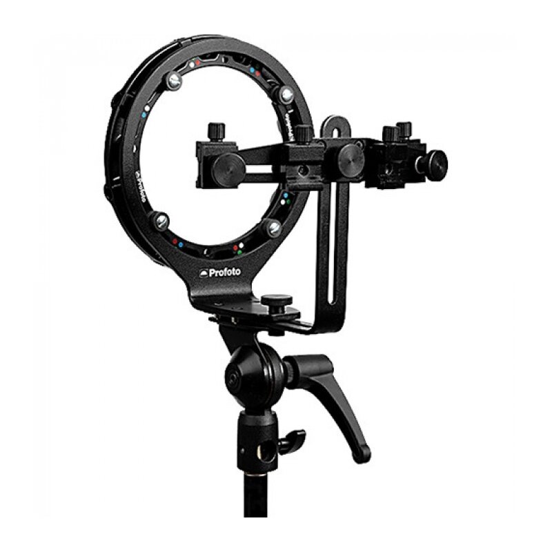 На данный кронштейн Вы можете установить одну или две накамерные вспышки и использовать их с различными софтбоксами. Особенности: - Возможность использовать все виды софтбоксов линейки RFI. - Создание мягкого освещения. - Возможность установить две вспышки и использовать их одновременно. - Плавная регулировка положения вспышек внутри софтбокса. - Вы можете регулировать наклон софтбокса и поворачивать его на 360° прямо на ходу. - Благодря специальным цветным меткам на адаптере, Вы можете с легкостью установить спицы вашего софтбокса. - Удобная установка синхронизаторов Profoto Air или других производителей.