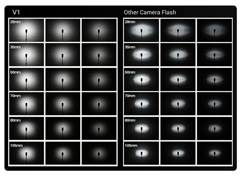 Благодаря литиевому аккумулятору вспышка перезаряжается всего за 1.5 с при срабатывании на полной мощности. При установке меньшей мощности (1/8-1/16) вы можете снимать целыми сериями со скоростью несколько кадров в секунду. В режиме «стробоскоп» вспышка V1 может обеспечить до 199 срабатываний в секунду.