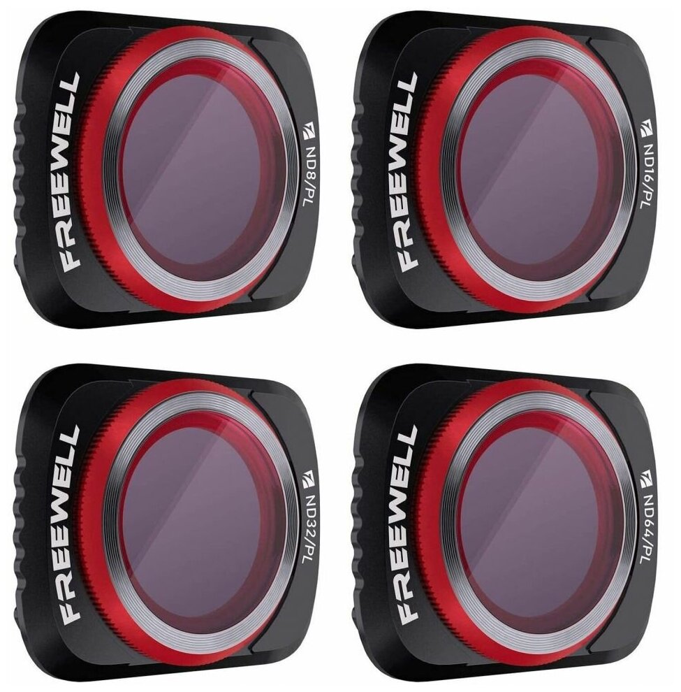 Набор фильтров для квадрокоптера DJI Mavic Air 2. Линзы от Freewell помогут поднять качество отснятых кадров. Простое крепление и высокое качество аксессуаров гарантируют положительные впечатления от работы. Стекло с особым покрытием не искажает цвета и позволяет снимать даже в 4K без потери резкости.Представленные в комплекте фильтры:ND8/PL. Ограничивает свет, попадающий в объектив, на 3 ступени диафрагмы. Помогает делать детализированные кадры даже в яркий солнечный день, предотвращая появление бликов, ухудшающих качество отснятых материалов;ND16/PL. Уменьшает свет на 4 ступени диафрагмы. С его помощью можно снимать кинематографические изображения в условиях очень яркого солнечного света, особенно днем и ранним утром. Изделие обеспечивает защиту от отражений;ND32/PL. Снижает выдержку камеры на 5 ступеней диафрагмы;ND64/PL. Эффективен для уменьшения выдержки камеры до минимума. Придает кадрам поистине кинематографический вид.Все светофильтры изготовлены вручную из оптического стекла высшего качества.Технология Freewell GimbalSafe гарантирует, что каждая рамка фильтра проходит строгие испытания на прочность, а ее легкий вес не оказывает отрицательное влияние на подвес квадрокоптера DJI Mavic Air 2.Линзы устойчивы к царапинам, водонепроницаемы, имеют защиту от пыли.Изделия быстросъемные, благодаря магнитному креплению SNAP-ON.Комплект поставляется с прочным кейсом, светофильтры надежно удерживаются в нем с помощью магнитного крепления.