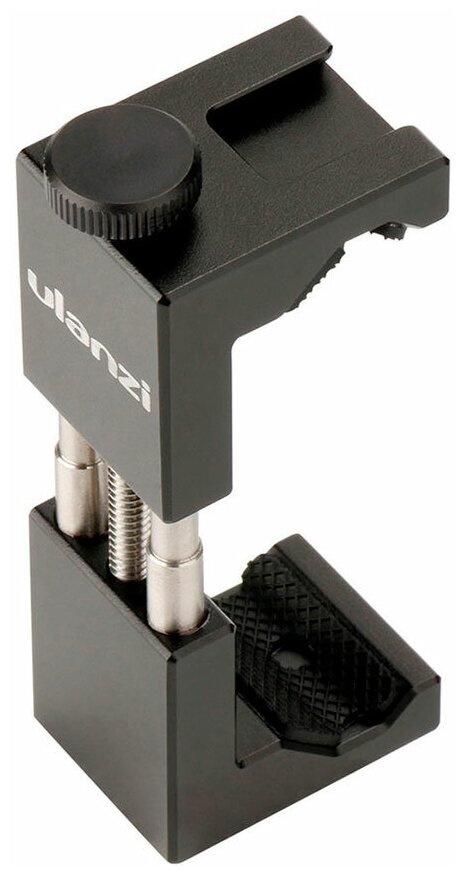 Простой и практичный держатель для смартфонов способен уместить в себя любую модель шириной до 9,5 см.Конструкция выполнена из авиационного сплава алюминия, что гарантирует долговечность и прочность.На дне держателя присутствует отверстие для крепления 1/4", а верхняя часть снабжена холодным башмаком для установки дополнительного оборудования для съёмки.
