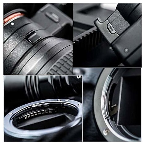 Автофокусный адаптер Viltrox NF-E1 позволяет устанавливать объективы с байонетом Nikon F на камеры системы Sony E (включая полнокадровые). Благодаря электронике адаптера, а также механическому приводу диафрагмы, поддерживаются все функции объектива: автофокус, автоэкспозиция, работа оптической стабилизации, передача EXIF мета-данных. USB порт позволяет пользователю самостоятельно обновлять прошивку адаптера по мере выхода новых версий. Крепления с обеих сторон выполнены из хромированной латуни, контакты позолочены для лучшей передачи сигнала. Штативная лапка у этого адаптера несъемная.