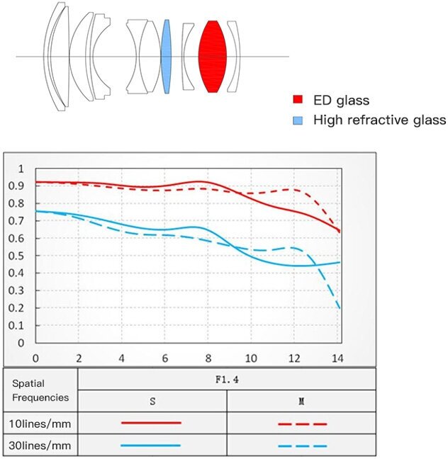 Автофокусный объектив для беззеркальных камер. В пересчете на кроп-фактор (1.5х) это классический портретный объектив, требующий некоторого расстояния между фотографом и моделью: в среднем от 2 до 5 метров (от «головы и плеч» до ростового). Оптическая схема довольно непростая, включает 10 элементов в 9 группах, из них один со сверхнизкой дисперсией (ED) и один с высокой рефракцией (HR). Как можно видеть из графика MTF и галереи снимков (все портреты сделаны на f/1.4), объектив демонстрирует прекрасную, «рабочую» резкость даже на полностью открытой диафрагме.Да, заметно падение по самым краям кадра, но это является разумным компромиссом: асферические элементы, которые обычно и используются для повышения резкости по краям, в этой схеме отсутствуют, так как относительно недавно выяснилось, что асферики ухудшают качество боке, добавляя такие артефакты как, например, «луковые кольца» в расфокусированных источниках света. В конце концов, если вам критически важно разместить модель в самом углу кадра, то можно просто закрыть диафрагму на 1-2 ступени. Диафрагма 9-лепестковая, поэтому даже при закрытии до f/2.8 точечные источники света сохраняют приятную округлую форму. По краям кадра на открытой диафрагме они сжимаются в овалы («кошачьи глазки» или «лимончики») – это естественный эффект, вызываемый виньетированием. При небольшом диафрагмировании эффект пропадает, как, собственно, и само виньетирование.Как можно видеть, у объектива очень хороший рисунок: размытие как переднего, так и заднего плана очень плавное, нет контуризации (нервозности) или других артефактов боке. Для портретного объектива это, наверно, самое важное.Второй важной вещью является автофокус: его наличие позволяет фотографу меньше отвлекаться на техническую сторону съемки и сосредоточиться на композиции и общении с моделью. Viltrox AF 56mm f/1.4, как и почти все беззеркальные автофокусные объективы, обладает встроенным линейным шаговым мотором (STM), который работает тихо, плавно и довольно быстро, хотя иногда проявляется «рыскание». Фокусировка внутренняя, за счет плавающей группы элементов, которая заодно исправляет аберрации на минимальной дистанции фокусировки (у объективов, которые фокусируются всем линзоблоком, они неизбежны). Как и у других объективов, фокусировочное кольцо не имеет прямой связи с механизмом фокусировки, а работает через электронику («focus by wire»). Кольцо диафрагмы вращается без ступеней, но если вам это не нравится, то его можно оставить в положении «A» и пользоваться одним из дисков на камере.Объектив выполнен в компактном и полностью металлическом корпусе с хромированным латунным байонетом, бленда также металлическая – все на высоком уровне. Влагозащита отсутствует – как и у Fujifilm XF 56mm f/1.2 R. В хвостовой части имеется USB вход для обновления прошивки объектива. Viltrox достаточно ответственно относится к поддержке продуктов и часто выпускает обновления – по большей части они касаются именно алгоритмов работы автофокуса, поскольку .