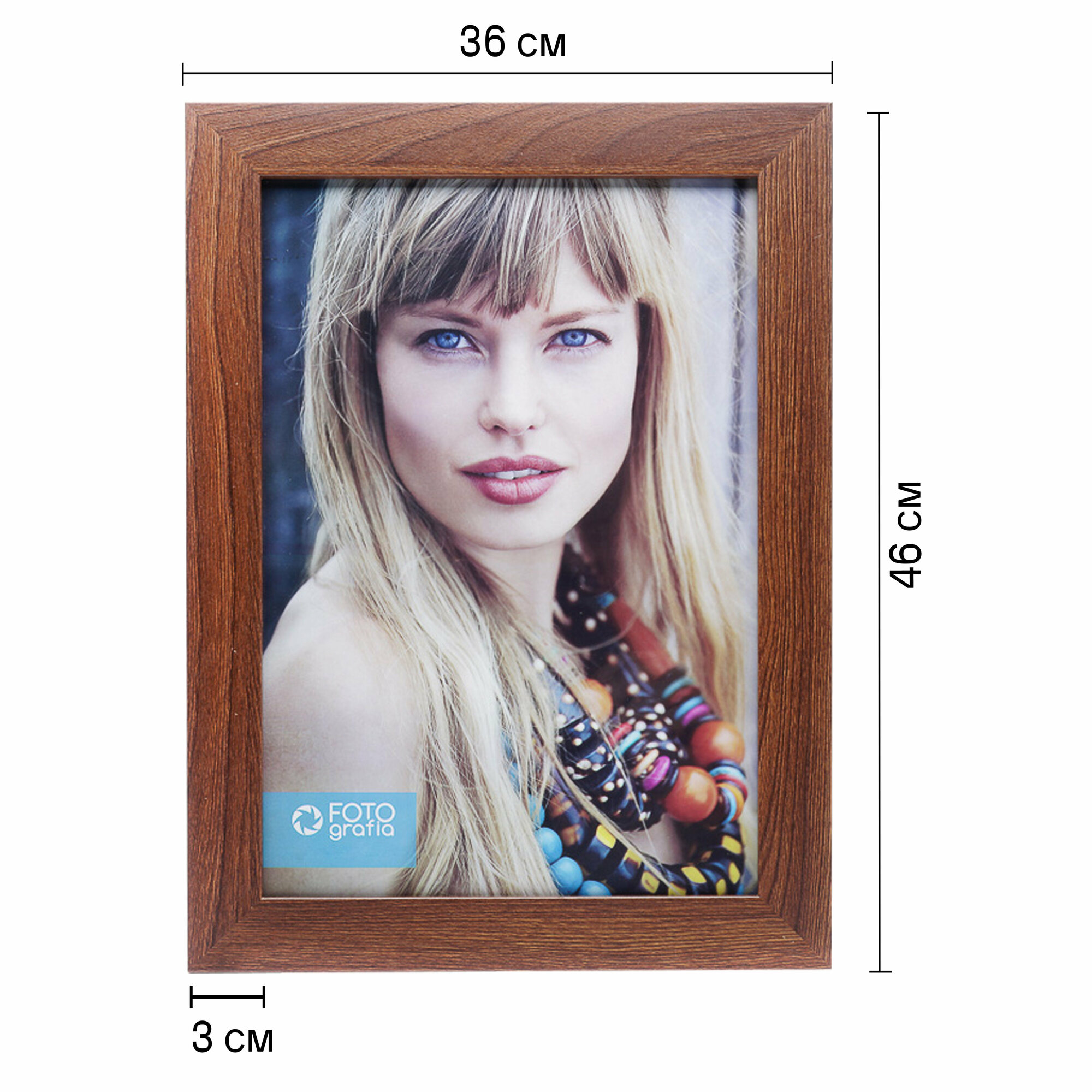 Рамка для фотографий формата 30х40 см. Широкий багет выполнен из МДФ, древесного волокна – достаточно легкого и при этом прочного, долговечного и экологически безопасного материала; верхнее покрытие из шпона. Стекло минеральное, прочное (толщина 1.5 мм), задник сделан из плотного листа оргалита. Имеется крепление для подвеса на крючок или гвоздь (ножка у этой модели отсутствует). Рамка может размещаться как вертикально, так и горизонтально. Универсальный, нейтральный дизайн хорошо подходит для самых разных сюжетов и интерьеров.Стороны багета плотно скреплены между собой металлическими скобами, ширина профиля: 3 см. Задник фиксируется с помощью нескольких отгибающихся металлических лепестков, которые плотно прижимают фотографию к стеклу. Бренд Fotografia объединяет под собой коллекции фотоальбомов и рамок. Рамки Fotografia с вашими любимыми снимками станут отличным украшением любого интерьера.