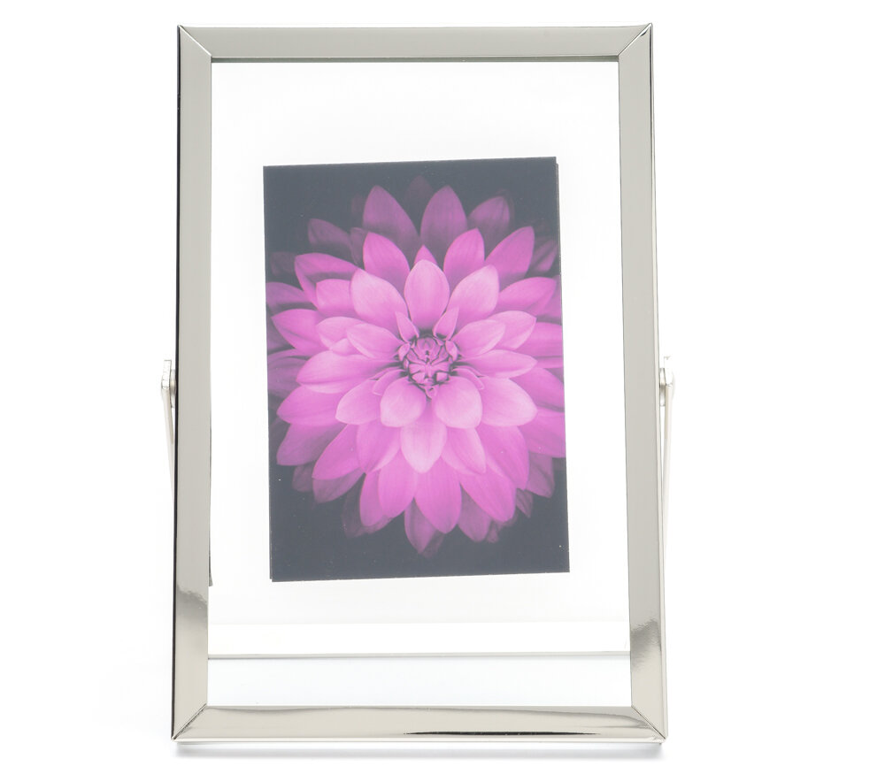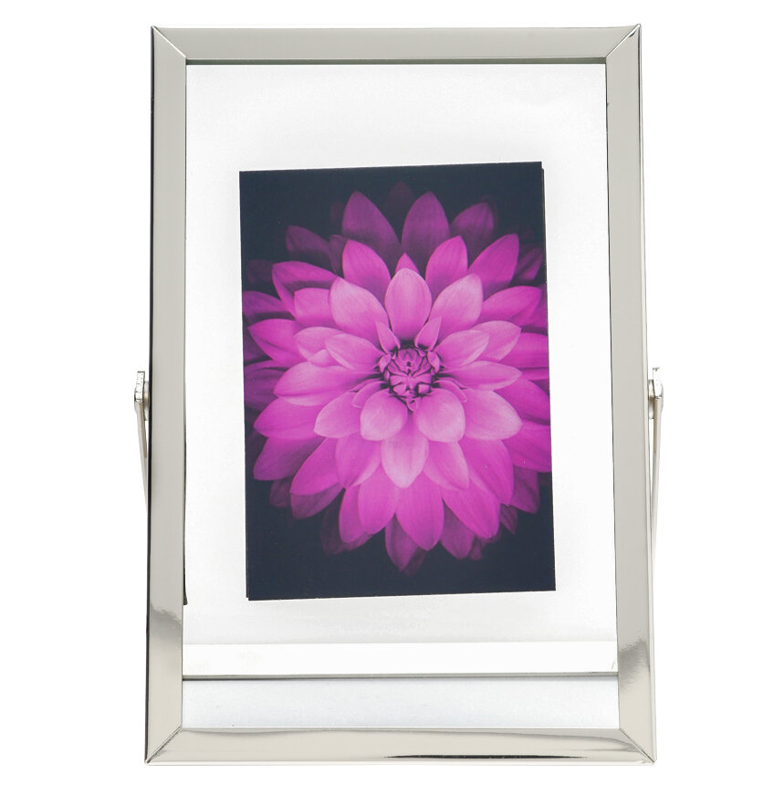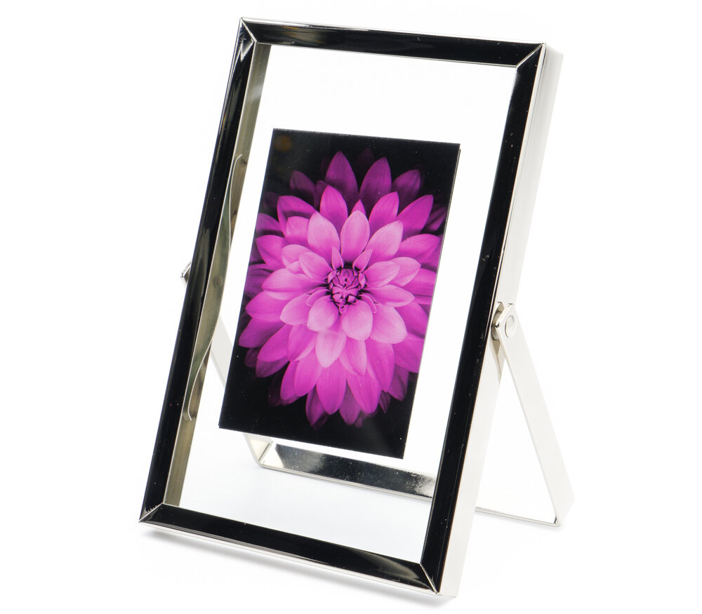Премиальная рамка для фотографий формата 10х15 см. Металлическая ножка позволяет разместить рамку вертикально на столе или полке. Поверхность багета глянцевая, зеркальная. Стекло минеральное, прочное (толщина 1.5 мм), задник также выполнен из стекла: получается прозрачное паспарту и эффект, как будто фотография висит в воздухе. Универсальный дизайн рамки хорошо подходит для самых разных стилей интерьера.