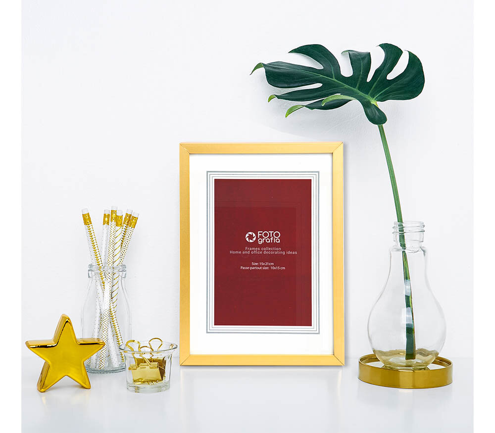 Фоторамка Fotografia 15x21 см, паспарту 10x15 см, золотистая