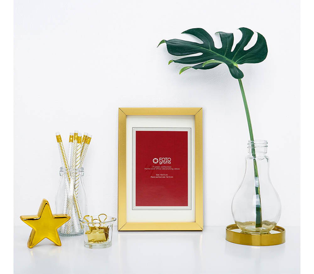 Фоторамка Fotografia 10x15 см, паспарту 9x13 см, золотистая