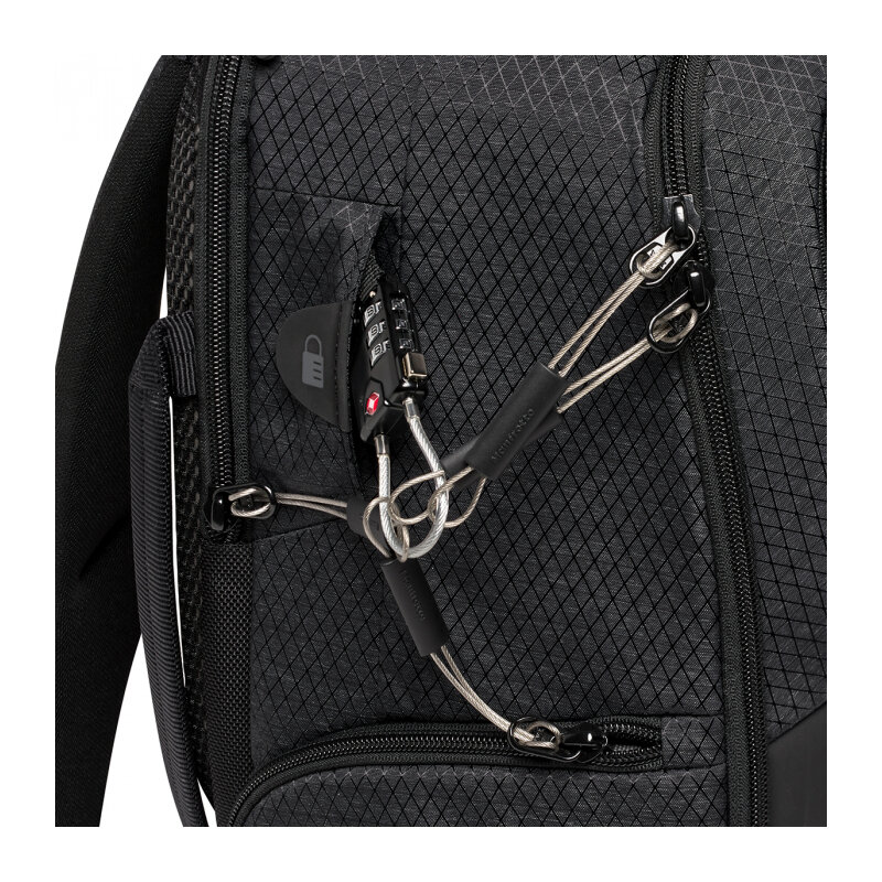 Рюкзак Manfrotto разработан для обеспечения высокого уровня безопасности оборудования профессионального фотографа или видеографа.В рюкзаках PRO Light применена новая система защиты M-Guard ™, которая была разработана и протестирована в лабораторных условиях, чтобы гарантировать высочайший уровень защиты и поглощения ударов в тех областях контакта, где это особенно важно. Разделители M-Guard™ изготовлены из вспененного этилвинилацетата высокой плотности (EVA), который обеспечивает исключительно высокий уровень поглощения ударов и при этом отличается компактностью. А возможность перестановки перегородок поможет оптимально использовать внутреннее пространство. Кроме того, использование в основе рюкзака вспененного материала SAS-TEC с эффектом памяти и стойкостью к ударам обеспечивает дополнительные амортизирующие свойства. Для большей беззаботности предусмотрен замок стандарта TSA. имеет безопасный доступ сзади, внутреннее пространство регулируется благодаря переставляемым перегородкам. В рюкзак вмещается 2-3 полнокадровые зеркальные или беззеркальные камеры с батарейной рукояткой и несколько объективов. Также внутреннее пространство может быть настроено с помощью специальной складывающейся панели, которую можно использовать двумя различными способами: 20% места выделить для размещения личных вещей (в верхнем отделении с возможностью быстрого доступа), остальные 80% под оборудование, либо 80% пространства выделить под личные вещи, а остальные 20% для техники.Доступ в верхней части рюкзака будет удобен для часто используемых камер или объективов. В фронтральной части находится отделение с карманами для мелких аксессуаров: смартфонов, кабелей, планшетов и т.д. Предусмотрен отсек ноутбука с диагональю 15 дюймов. Кармашки с обоих боков подойдут для внешнего размещения трэвел-штатива. Регулируемый нагрудный ремень обеспечивает лучшую стабильность и комфорт, а двусторонний чехол для защиты от дождя и солнца обеспечит дополнительную защиту от непогоды и исключит риск перегрева техники в солнечный день. В качестве основного внешнего материала использован рипстоп - комбинированное плетение из нейлона и полиэстера с армирующей пряжей для баланса легкости, эстетики и улучшенных характеристик. Также применены прочный нейлон и хайпалон, который отличается стойкостью к химическим веществам и экстремальным температурам. В сочетании с молниями YKK® с металлическим пуллерами, элементами Duraflex® рюкзак представляет собой легкое и надежное решение, способное выдерживать самые интенсивные нагрузки, обеспечивая долгосрочную защиту оборудования.