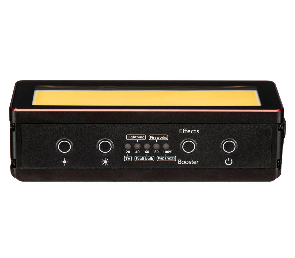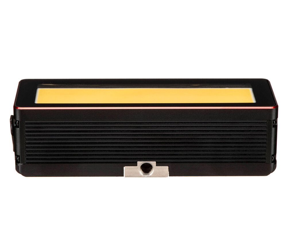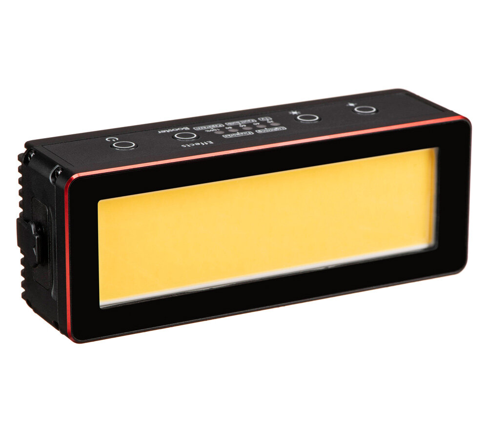 Уникальный светодиодный осветитель с классом защиты IP68 выдерживает погружения под воду на глубину до 10 метров. Это очень яркий источник света для своих размеров и потребляемой мощности, что обеспечивается технологией COB (chip on board): 10 Вт обеспечивают освещенность 300 лк на расстоянии 1 м или 1300 лк на 0.5 м. Режим Boost дает дополнительные +50% к яркости (2300 лк на 0.5 м), но работает не более 1 минуты, перезарядка занимает около 40 секунд. Встроенный аккумулятор 3800 мАч обеспечивает около 80 минут работы с максимальной яркостью.Aputure AL-MW можно назвать самым ярким источником света скрытного размещения: благодаря размерам и форме его можно незаметно расположить прямо в кадре, за каким-либо небольшим объектом. Высокая точность цветопередачи: индексы CRI и TLCI превышают 95. Прибор работает с температурой дневного света (5600К), но в комплект также включено несколько пластиковых светофильтров, которые меняют температуру в теплую или холодную сторону: CTO, 1/2 CTO, 1/4 CTO, CTB, 1/2 CTB, 1/4 CTB. Также есть белый матовый рассеивающий фильтр с плотностью 1.5 ступени и более плотный силиконовый рассеиватель (2.5 ступени), который может использоваться вместе с фильтрами. Наконец, вы можете использовать листовые желатиновые светофильтры, чтобы придать освещению особый цвет.Aputure AL-MW изготавливается в герметичном металлическом корпусе с возможностью погружения на глубину до 10 метров. На верхней грани корпуса располагаются 2 кнопки для управления яркостью (изменяется с шагом 10%), 5 светодиодов, показывающих текущий уровень яркости и заряда батареи, а также кнопка Effects / Booster, которая активирует усиленный режим свечения и включает спецэффекты. В памяти AL-MW сохранено 5 спецэффектов: молния, папарацци (фотовспышки), телеэкран, испорченная лампочка и фейерверк. Помимо использования встроенного аккумулятора, осветитель также может работать с постоянным питанием от USB источников 5В 2А.