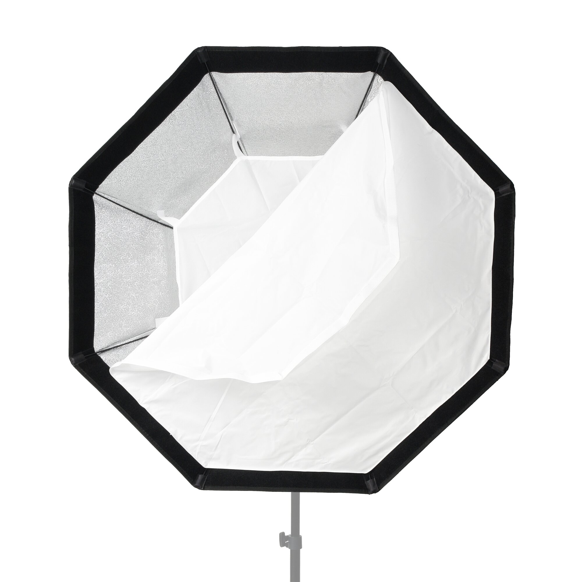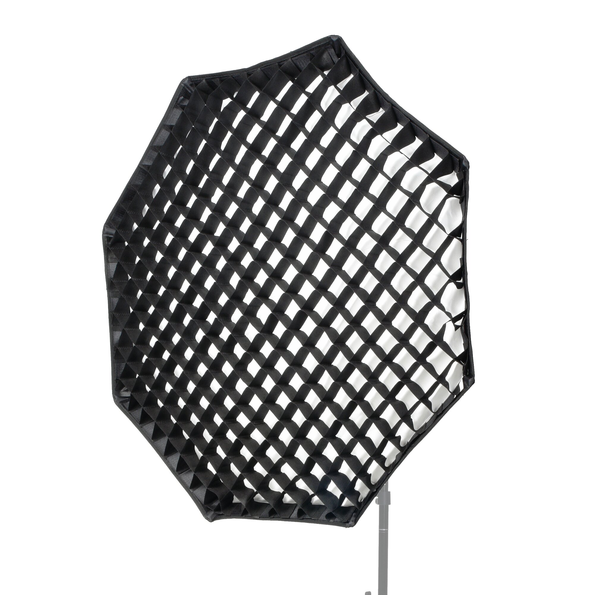 Внутренняя поверхность металлизированная, серебристая – отражает свет без поглощения или изменения цветовой температуры. 2 рассеивателя, внутренний и внешний, позволяют регулировать степень смягчения света и форму светового потока. Вы можете использовать только внешний или только внутренний рассеиватель, или же снять оба – в этом случае софтбокс будет выступать в качестве большого жесткого рефлектора. Сотовая решетка позволяет дополнительно ограничить периферийное рассеивание света, чтобы освещалась только строго очерченная область.