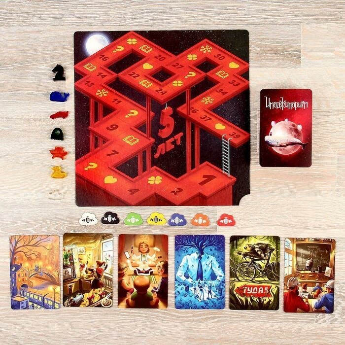 Настольная игра . 5 лет - настоящий подарок для всех поклонников известной серии. Юбилейное издание порадует своих фанатов новым исполнением фигурок, а также красивыми изображениями на карточках. Несмотря на изменения в дизайне, правила остались неизменными: ведущий по-прежнему будет задавать тон игре, озвучивая ассоциации к одной из своих карт. Игрокам нужно быть предельно находчивыми, поскольку в качестве ассоциации может стать слово, предложение, известная цитата, стихотворение, песня и даже набор звуков. Правильная отгадка карты ведущего позволит набрать необходимое количество очков, необходимых для победы.
