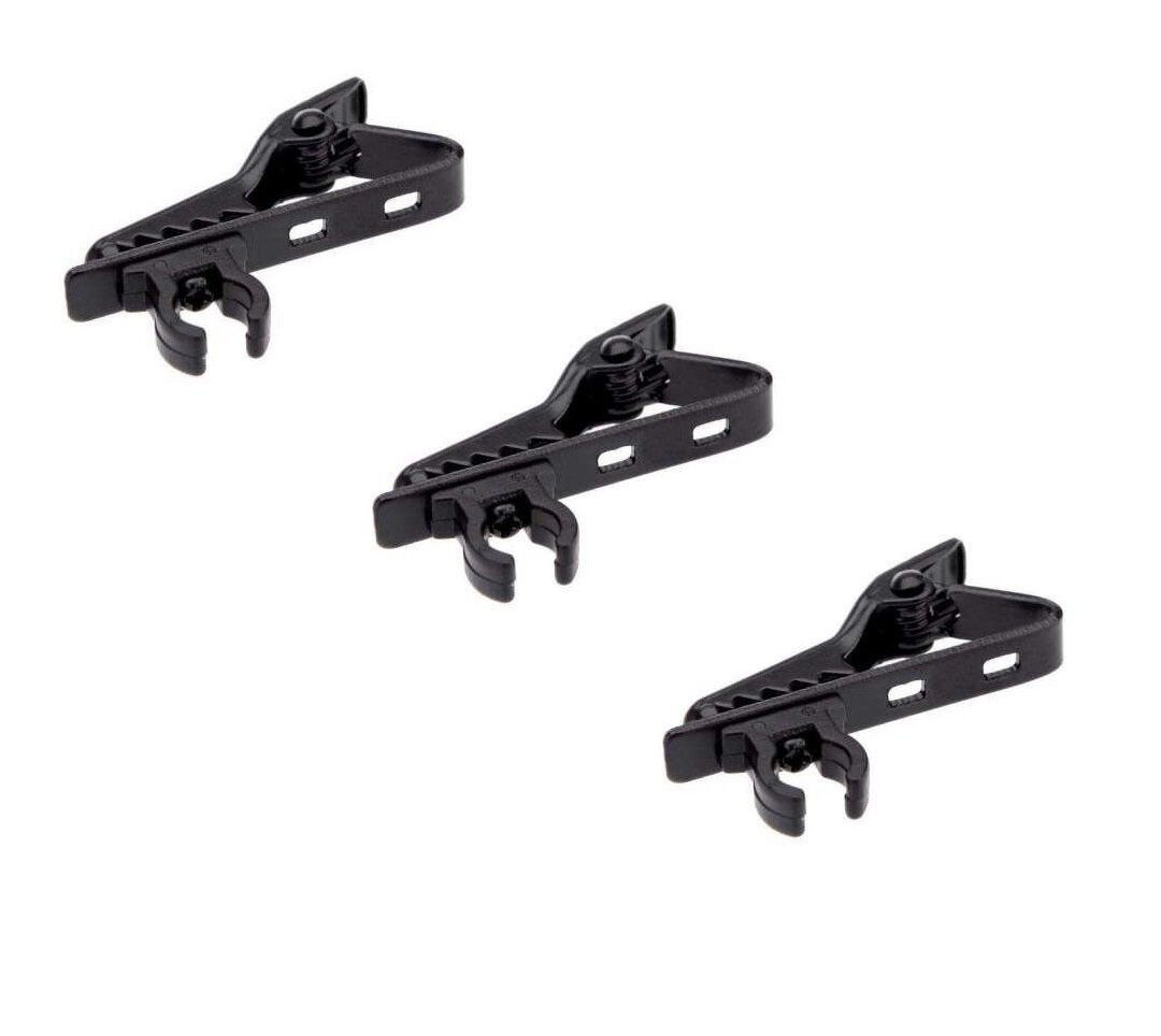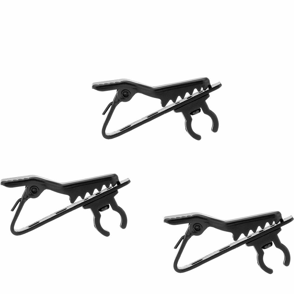 Металлическая клипса-«крокодильчик» для петличных микрофонов. 3 шт. в комплекте. Диаметр зажима для микрофона: 6 мм.
