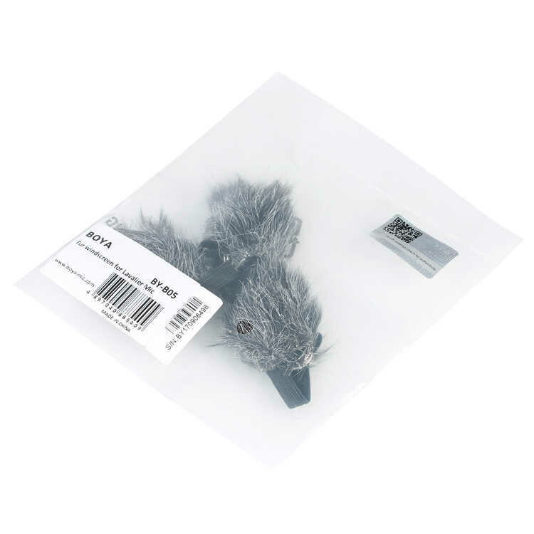 Boya BY-B05 – меховая ветрозащита для петличных микрофонов. Предназначена минимизировать шум ветра при использовании микрофона в ветреную погоду. Ее искусственный мех специально разработан так, чтобы минимизировать шум ветра, оставаясь при этом акустически прозрачным. Ветрозащита совместима с микрофонами Boya BY-M1, BY-LM10 и аналогичными микрофонами других производителей.