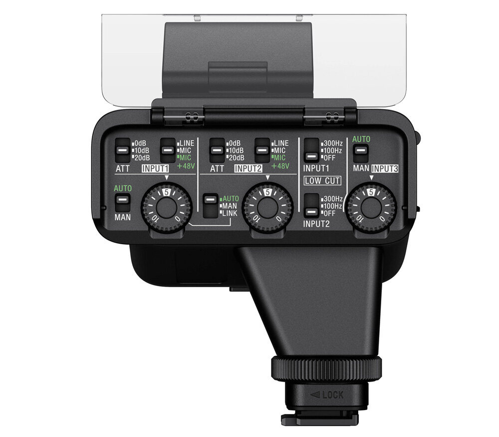 Отличный звук практически без постороннего шума При подключении через мультиинтерфейсный разъем совместимой камеры со встроенным цифровым аудиоинтерфейсом аудиосигнал передается непосредственно в камеру в цифровом виде, благодаря чему его качество не ухудшается. Простое переключение обеспечивает совместимость с различными камерами с аналоговым интерфейсом. Универсальные возможности подключения В качестве входов предусмотрены два комбинированных гнезда XLR/TRS и один стереофонический мини-разъем 3,5 мм. Комбинированные гнезда XLR/TRS можно переключать для использования линейного, микрофонного или микрофонного с фантомным электропитанием 48 В входов. Гибкие возможности настройки Различные варианты крепления позволяют использовать устройство с профессиональными ригами и клетками для камеры. В комплект входят удлинительные аудиокабели для удобного расположения XLR-адаптера на риге. Беспроводное соединение Просто подключите XLR-адаптер к мультиинтерфейсному разъему на совместимой камере для соединения с источниками питания и аудиоподключения без дополнительных кабелей или аккумуляторов. Мультиинтерфейсный разъем от Sony обеспечивает интеллектуальные возможности подключения и управления для различных аксессуаров, повышая гибкость и мобильность при съемке на системные камеры серии α. Комплексное управление Возможность управления во время записи значительно облегчает процесс постобработки. Есть возможность управления уровнем записи (AUTO/MANUAL), связью уровней записи (INPUT 1 — INPUT 2), аттенюатором и фильтром низких частот (100/300 Гц). Подавление механического шума Усовершенствованная конструкция подавляет удары и вибрацию, эффективно снижая уровень низкочастотных шумов, которые могут ухудшать качество звука. Микрофон можно прикрепить непосредственно к камере без дополнительных соединительных кабелей, при использовании которых также может возникать шум, препятствующий записи звука В комплект входит остронаправленный микрофон В комплект входят остронаправленный монофонический микрофон (ECM-XM1) и меховый ветрозащитный экран, который снижает уровень шума от ветра. Компактная и легкая конструкция весом всего 187 г Два входа XLR/TRS с фантомным электропитанием Стандартный вход микрофона 3,5 мм с подачей напряжения питания при подключении Мультиинтерфейсный разъем, совместимый с цифровым интерфейсом, обеспечивает четкий звук Полностью ручное управление и разнообразные варианты установки для профессионального использования