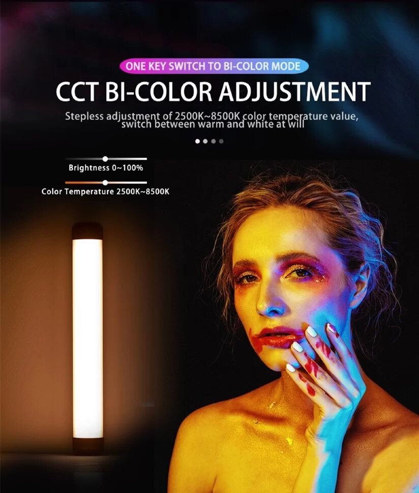Портативный осветитель для селфи, профессиональной съемки и развлечений. Помимо встроенного RGB, цветовая температура регулируется от 2500К до 8000К На задней части предусмотрена панель управления, дисплец, а также магнит для надежной фиксации устройства. Светильник, установленный в углу помещения, позволит создать нужный декоративный эффект для любой сцены Осветитель работает от аккумуляторной батареи емкостью 2500 мАч. Полностью заряженная батарея обеспечивает работу устройства от 1,5 до 14 часов в зависимости от уровня яркости Комплектация: осветителькабель USB