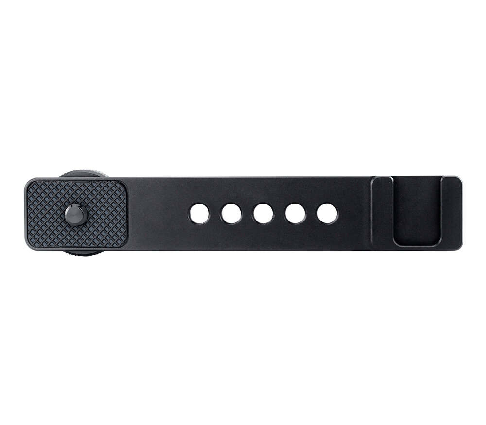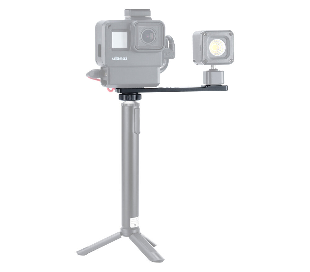 Площадка для установки оснащения для съёмки поможет вам добавить дополнительное оборудование к вашему стабилизатору или моноподу. Сама деталь имеет отверстие и винт 1/4" с одной стороны и холодный башмак с другой. В средней части площадки имеется 5 отверстий 1/4", что расширяет возможности приспособления.