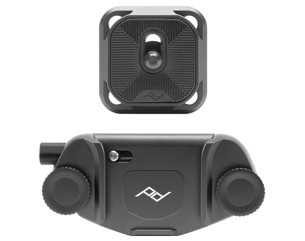 Peak Design Capture V3 – металлическая пряжка для крепления камеры на поясном ремне, нагрудной лямке рюкзака или любом другом ремне шириной до 6.35 см и толщиной до 2.2 см. Съемная площадка крепится в штативное гнездо камеры, стандартная площадка позволяет ставить камеру в любом из 4 направлений. Например, поставив камеру боком, удобно менять объективы. Боковое крепление также хорошо подходит для камер с короткими объективами.Площадка напрямую совместима со штативными головками системы Arca Swiss: вы можете снять камеру с пояса и поставить на штатив (и обратно). Для владельцев штативов Manfrotto можно приобрести альтернативную площадку, которая подходит к головкам системы RC2 (с площадкой 200PL).Пряжка Peak Design Capture V3 подходит как для длительного ношения камеры, так и просто для того, чтобы быстро освободить руки на время передышки между съемками – поэтому она пользуется большой популярностью среди профессиональных фотографов (спорт, репортаж, мероприятия). Крепление выдерживает нагрузку более 90 кг, поэтому камера останется на месте, даже если кто-то попробует вырвать ее силой.Камера с площадкой легко устанавливается в пряжку (вы услышите «клик»), а чтобы вытащить ее обратно, требуется нажать на кнопку. Для безопасности в общественных местах вы можете повернуть штифт замка в сторону, что заблокирует замок. Камера немного ходит в креплении - это не является признаком брака, она никуда не выскочит. Это сделано для того, чтобы фотоаппарат можно было легко, не глядя, поставить в пряжку, вместо того чтобы долго нащупывать правильное положение.Дополнительные аксессуары: для тяжелых комплектов (полнокадровые камеры с телеобъективами и тому подобное) рекомендуется широкая подушка Pro Pad, которая распределяет вес камеры по большей площади. Площадку можно прикрепить к ремням Peak Design или ремням других производителей с помощью специальных анкеров (Anchors). Наконец, вы можете заменить стандартную площадку на адаптер для объективов, адаптер для биноклей, или присоединить к ней экшен-камеру для нагрудного ношения.Peak Design Capture V3 отличается от предыдущих версий более тонким и более легким дизайном: выступы стали гораздо меньше, поэтому теперь углы не задевают тело при наклонах или широких движениях рук. Все выступающие части сглажены при обработке. Использование стало более простым и интуитивно понятным.