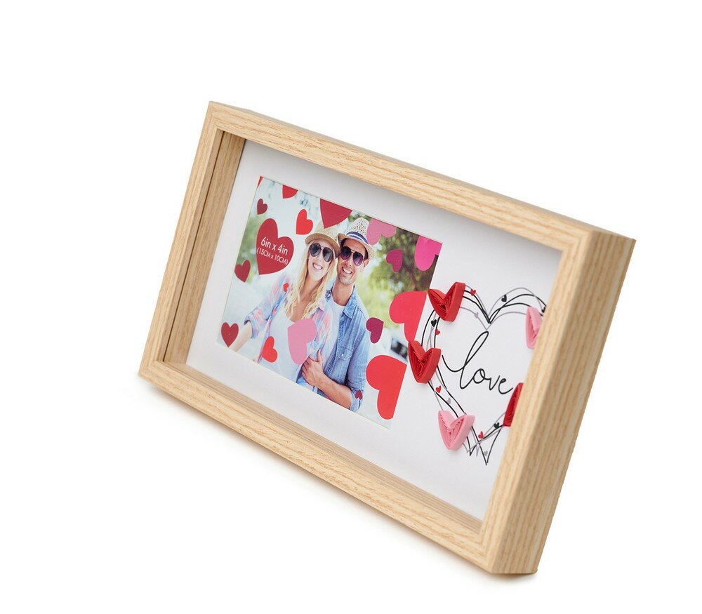 Элегантная рамка для фотографий формата 10х15 см. Багет выполнен из МДФ, древесного волокна – достаточно легкого и при этом прочного, долговечного и экологически безопасного материала. Украшением рамки являются пять сердец, сложенных из бумаги, которые располагаются под стеклом. Стекло прочное, толщиной 1.5 мм. Внешний размер рамки: 27х15 см. Задник из плотного листа оргалита фиксируется с помощью удобных поворотных зажимов. Рамка упакована в подарочную крафт-коробку.Дизайн фоторамки хорошо подходит для романтических и семейных фотографий. Сзади предусмотрена широкая ножка-подставка для горизонтальной установки на стол или полку. Бренд Fotografia объединяет под собой коллекции фотоальбомов и рамок. Рамки Fotografia с вашими любимыми фотографиями станут отличным украшением любого интерьера. Они хорошо подходят в качестве подарка: например, на День рождения, юбилей или годовщину свадьбы.