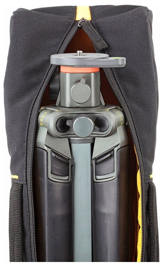 Чехол для штатива Vanguard - гораздо более удобная и практичная модель по сравнению с чехлами из комплектов со штативами. Чехол сшит из прочного водостойкого нейлона с дополнительным уплотнителем: плотные стенки защищают штатив от осадков, грязи и ударов. Он раскрывается на всю длину для большего удобства, имеет две широкие ручки, регулируемый плечевой ремень и застежку Alta Link, позволяющую быстро и надежно фиксировать чехол со штативом на новых рюкзаках серий Alta Rise или Alta Sky. Внутри имеется карман на молнии для инструмента, быстросъемной площадки и тому подобных аксессуаров. Чехол вмещает штативы длиной до 70 см.