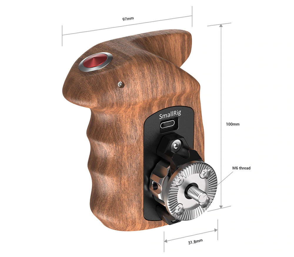 Деревянная рукоятка со спусковой кнопкой, подключается в разъем USB Multi, совместима со всеми основными камерами Sony (список совместимых камер ниже). Крепление розеточного типа (Arri), со свободным продольным наклоном рукоятки (360°). Надежный металлический каркас сочетается с гладкой полированной накладкой из палисандра, обеспечивающий высокий комфорт при использовании. Данная рукоятка предназначена только под правую руку.