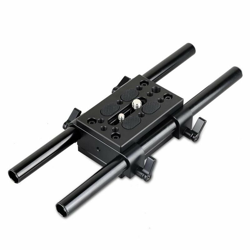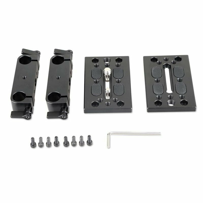 Модель состоит из 4х частей, которые можно использовать раздельно. Площадка для установки съёмочного оборудования имеет сквозные крепления для направляющих диаметром 15 мм, что позволяет добавить к конструкции дополнительное оснащение. Характеристики: габариты: 90 x 110 x 40 мм масса: 380 г Комплектация: базовая площадка - 2 шт держатели для направляющих - 2 шт винт 1/4" - 1 шт винт 3/8" - 1 шт установочный винт - 8 шт шестигранный ключ