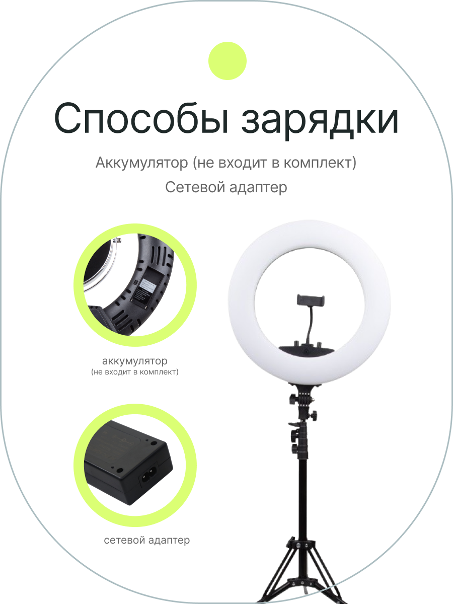| Комплектация | светодиодный осветитель Raylab RL-0418 Kit кольцевой, пульт ДУ, держатель для телефона, зеркало, стойка 2м, адаптер питания от сети, чехол для хранения и переноски |