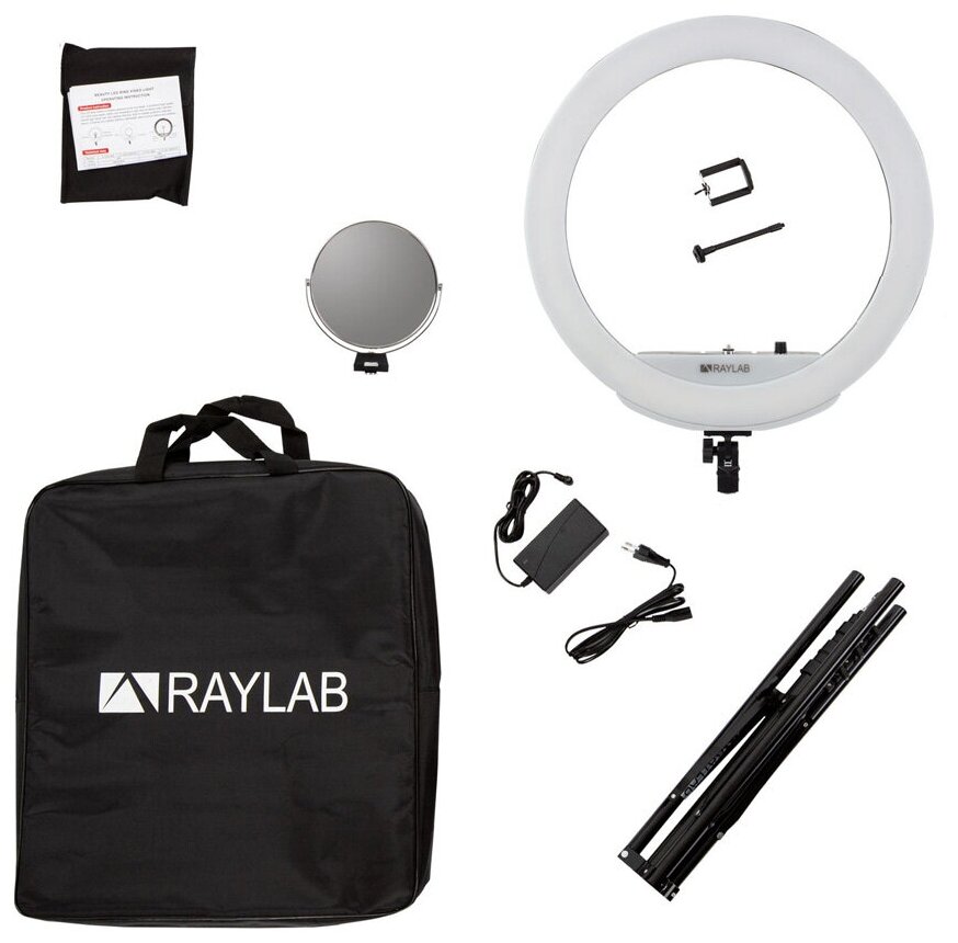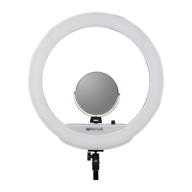 Светодиодный осветитель Raylab RL-0618 Kit кольцевой — осветитель, с помощью которого можно легко получить качественное равномерное освещение, исключить появление лишних теней, а также обеспечить ровный цвет кожи при портретной съемке и создать привлекательный эффект ореола в глазах. Главным преимуществом данной установки является 448 светодиодов, которые создают смягченный распределенный свет с мощностью в 48 Вт. Элементы работают со цветовой температурой в 224 3200К и 224 5600К, обеспечивая световой поток в 5280 люменов при индексе цветопередачи CRI95+. Лампы изготовлены по стандартам качества, что предопределяет их долговечность — до 50000 часов в режиме работы. Фирменная лампа закреплена на подвижной опоре, которая позволяет ей свободно вращаться в нужном направлении и наклоняться под любым углом. При этом, конструкция элемента прочная, что полностью исключает самовольные движения. Данный девайс может быть рядом с оператором в совершенно любых обстоятельствах, в том числе и на выездных фотосъемках. Этому способствует небольшой вес изделия и надежный транспортировочный чехол, предоставленный производителем каждому владельцу устройства.