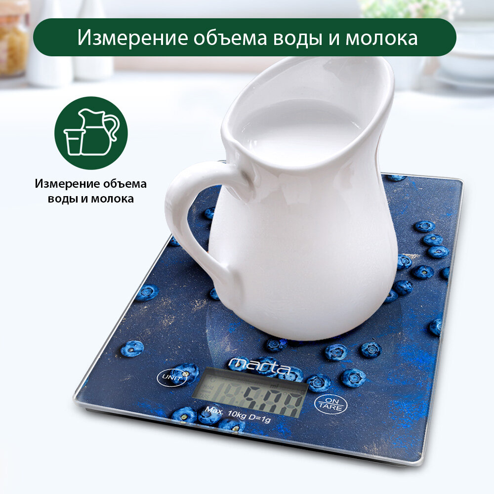 | Прочие особенности и свойства | Функция «ТАРА» позволяет не учитывать массу посуды при взвешивании продуктов, а индикаторы перегрузки и замены батареи сделают работу весов бесперебойной в течение длительного времени. Для экономии заряда литиевой батарейки (входящей в комплект поставки) весы отключаются автоматически, если не используются. |
