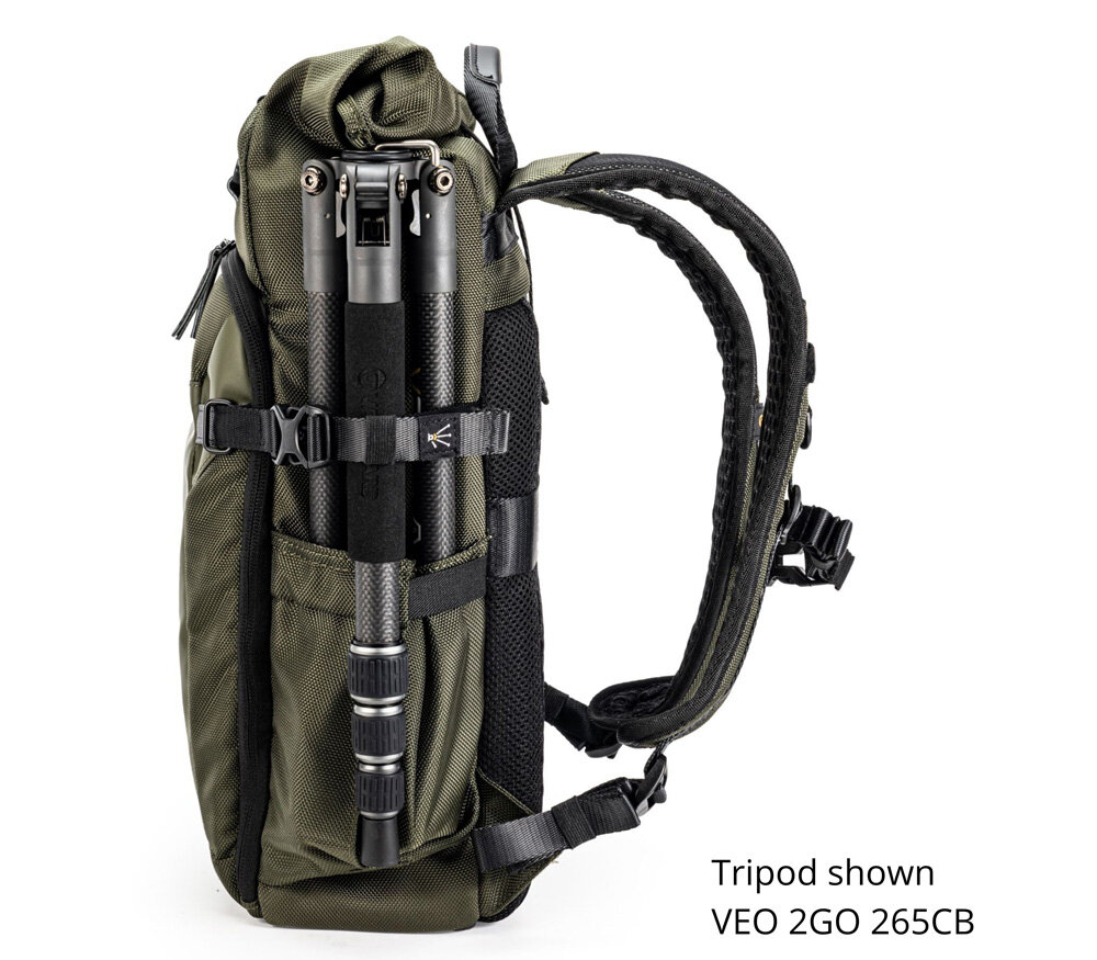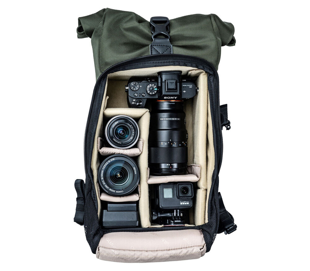 | Вместимость | беззеркальная или небольшая зеркальная камера, 3-4 объектива, вспышка, 10" планшет и компактный штатив на внешнем креплении |