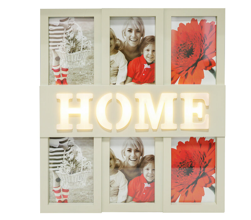 Мультирамка Fotografia 6 фото 10х15 см, с подсветкой, кремовая