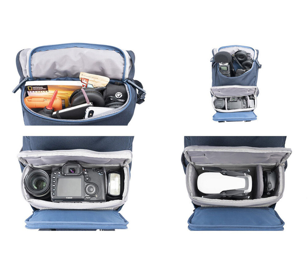 Рюкзак среднего размера VEO Range 48M подходит для полнокадровых зеркальных и беззеркальных камер. Структурно он разделен на 2 половины: нижняя отведена для камеры с 2-3 объективами, верхняя – для аксессуаров и личных вещей. У спинки располагается отдельный отсек для ноутбука с диагональю экрана до 15". Рюкзак хорошо подходит для выходов на целый день. Он отличается стильным дизайном с приятной синтетической тканью «под хлопок» (полиэстер 600D Dobby). Доступен в 2 цветах: бежевом и синем.Лямки снабжены мягким уплотнителем и дышащей сеткой, спинка – ремнем для крепления на ручке дорожного чемодана. Для защиты от дождя / снега / пылевых бурь в комплекте имеется непромокаемых чехол из нейлона.