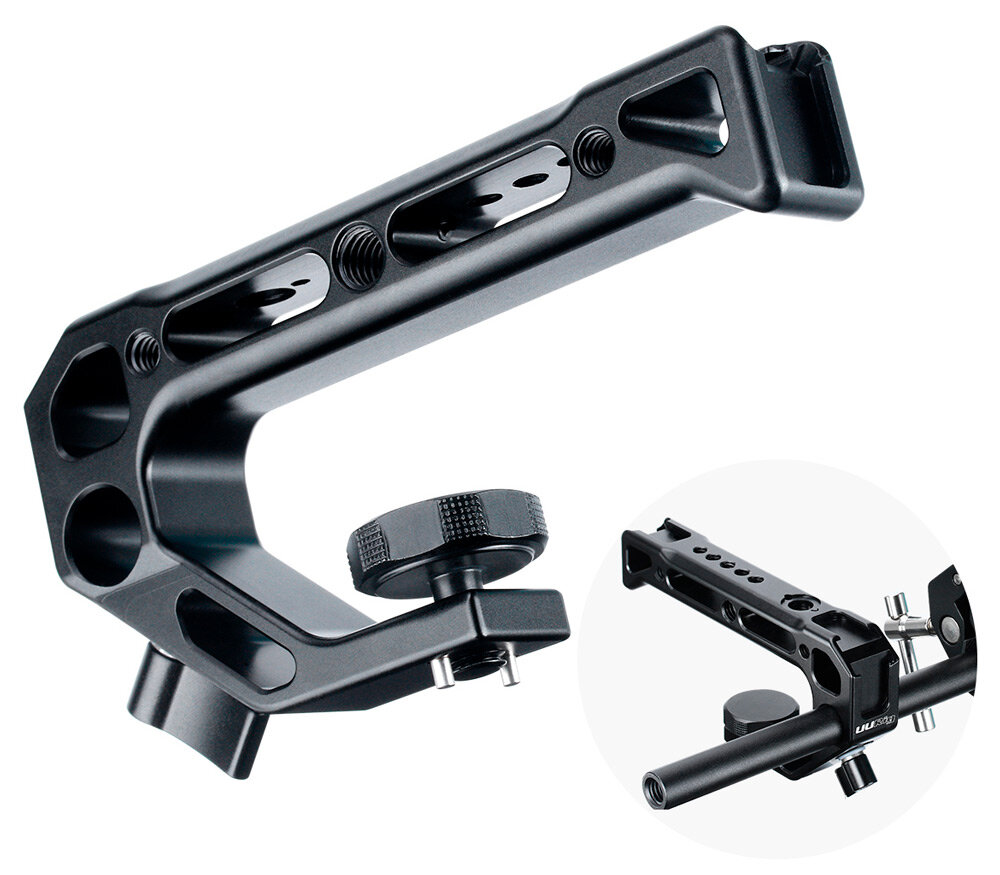 Универсальная верхняя ручка, которая имеет крепление на Arri для подсоединения к камере или клетке. Дополнительно предусмотрены резьбовые отверстия для установки необходимых аксессуаров.