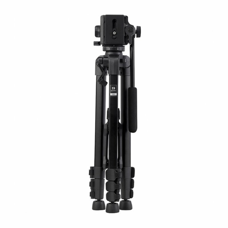 Универсальный комплект для фото- и видеосъемки на смартфон, фото- или видеокамеру. Компактный, легкий и недорогой комплект начального уровня. ГоловаГидравлические картриджи, установленные по осям панорамирования и наклона, обеспечивают плавные и полностью контролируемые движения камеры, без рывков. Несмотря на свои компактные размеры, она выдерживает оборудование весом до 4.5 кг. Цифровая разметка на диске панорамирования и оси наклона позволяет максимально точно настроить положение камеры, что существенно влияет на качество съемки. Диапазон продольного наклона головки: +90° ~ -90°, диапазон панорамирования: 360°. Винт на оси панорамирования и удобная удлиненная ручка надежно фиксируют выбранное положение. Пузырьковый уровень позволит точно установить штатив по линии горизонта, что очень важно для съемки видеосюжетов. Компактная быстросъемная площадка позволяет быстро установить и снять камеру. Надежный механизм фиксации предотвращает падение плохо закрепленной камеры.ШтативВ ножках штатива использованы обновленные трубы с квадратным профилем сечения: такие трубы имеют повышенную прочность, устойчивость к вибрациям, на изгиб, деформацию, скручивание и излом. Выдвижная центральная колонна обеспечивает дополнительную высоту, когда в этом есть необходимость. Редукторный механизм подъема центральной колонны обеспечивает максимальную точность настройки. Фиксируется она с помощью надежного винта. Снизу на колонне расположен крючок для подвески груза (балласта), что обеспечивает дополнительную устойчивость, когда в этом есть необходимость (например, при сильном ветре). Размах ног регулируется цанговым замком на центральной колоне. Эргономичные клипсы замков секций ножек позволяют максимально быстро установить штатив и также быстро сложить его для транспортировки. Улучшенная эргономика также упрощает работу со штативом в любых погодных условиях. Центральная растяжка обеспечивает максимальную стабильность штатива. Адаптивные поворотные резиновые опоры скрадывают неровности, а протектор улучшают сцепление на всех напольных и грунтовых поверхностях. Пузырьковый уровень позволит точно установить штатив по линии горизонта, что очень важно для съемки видеосюжетов. Штатив комплектуется чехлом для переноски и хранения.Съемка на смартфонДля съемки на смартфон штатив комплектуется универсальным держателем для смартфона Benro MH2N, который совместим с любыми смартфонами шириной от 4.8 до 10 cм. В верхней части держателя расположен холодный башмак для установки различных аксессуаров (свет, микрофон и так далее). Прочный зажимной пружинный механизм, ограничительные бортики на фиксаторах и силиконовые вставки надежно фиксируют ваш смартфон и обеспечивают его безопасность во время съемки. Стандартный разъем 1/4" расположен у основания держателя. Его также можно использовать для установки на монопод, селфи-палку или другие опоры.