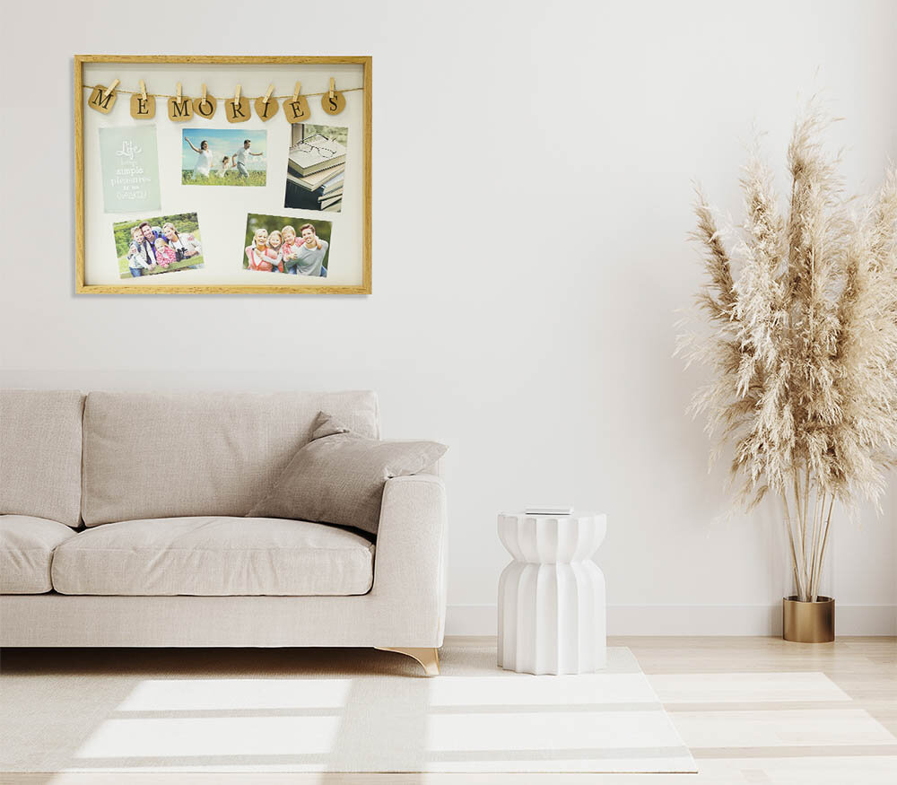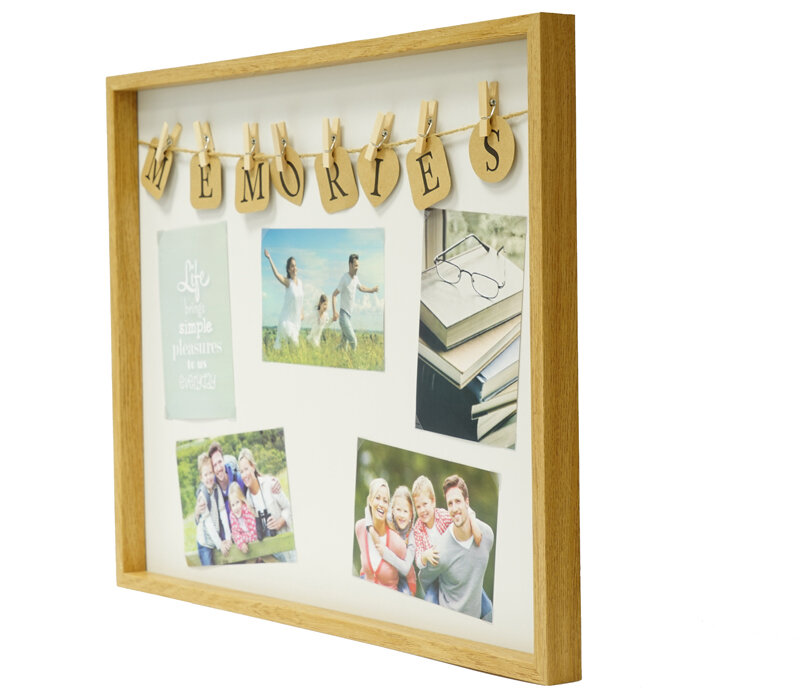 Мультирамка Fotografia "Memories" на 5 фотографий 10 х 15 см. Фотографии крепятся прозрачными уголками, которые идут в комплекте. Багет выполнен из МДФ, древесного волокна – достаточно легкого и при этом прочного, долговечного и экологически безопасного материала. Задник выполнен из плотного листа оргалита; стекло у этой модели отсутствует. Цвет багета: светлое дерево (дуб). Универсальный дизайн, хорошо подходит для семейных снимков.Данная рамка предназначена для настенного размещения, для этого с тыльной стороны у нее имеются крепления под гвоздь или крючок. Все фоторамки надежно упаковываются нашими специалистами, чтобы вы получили их в самом лучшем виде. Бренд Fotografia объединяет под собой коллекции фотоальбомов и рамок. Рамки Fotografia с вашими любимыми фотографиями станут отличным украшением любого интерьера. Они хорошо подходят в качестве подарка: например, на День рождения или годовщину свадьбы.
