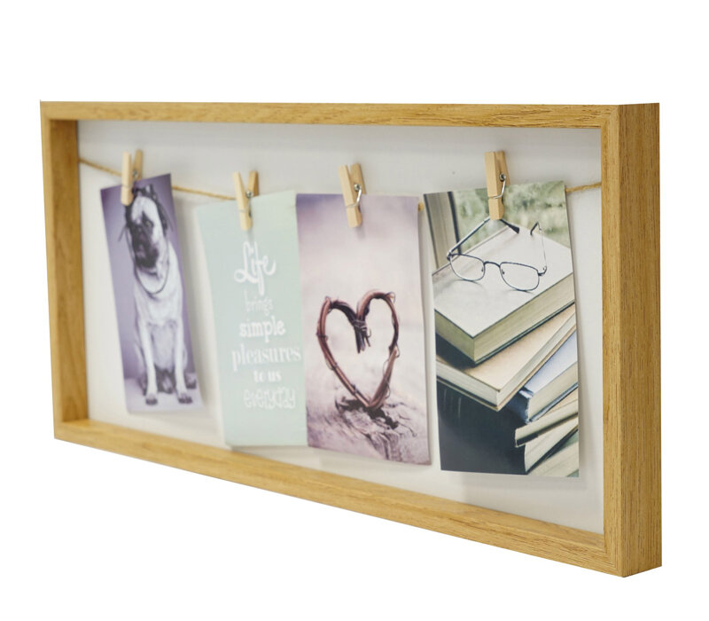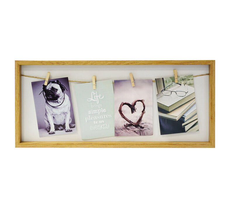Деревянная мультирамка "Fotografia" на 4 фотографии 10 х 15 см. Фотографии крепятся на прищепках. Имеется крепление для горизонтального подвеса. Материал вставки - надежное стекло с толщиной 1,5 мм. Поворотный зажим из пластика на обратной стороне обеспечивает легкость доступа и удобство эксплуатации, постоянное плотное прилегание фотографии к поверхности. Соединение углов выполнено с помощью особых металлических крепежей располагаемых внутри профиля, это обеспечивает плотную и ровную фиксацию багета друг к другу с отсутствием просветов и перекосов. Также предусмотрена защита углов рамки с помощью картонных уголков.